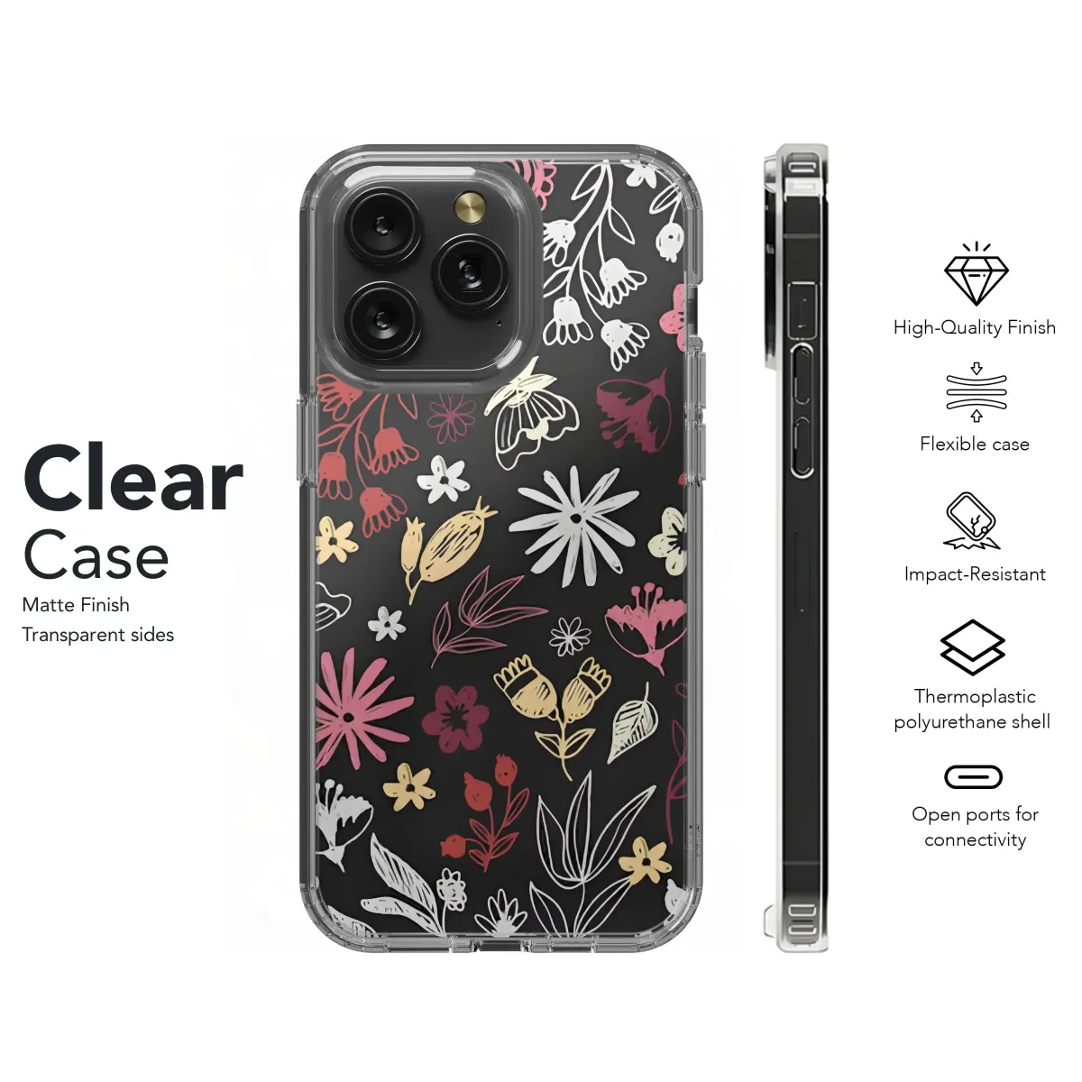 Embrace the beauty of nature with this charming gadget accessory featuring a delightful hand-drawn floral pattern. This intricate botanical doodle design showcases a whimsical garden scattered across a deep, dark background. Delicate white blooms like daisies, sunny yellow petals, soft pink blossoms reminiscent of asters, and rich burgundy leaves and berries intertwine gracefully in a unique sketchy style, giving it a charming, handcrafted, vintage feel. Each element is meticulously rendered, creating a visually rich tapestry of organic forms and textures. This multi-color nature print evokes the feeling of a rustic wildflower meadow, a secret garden, or a classic botanical illustration. Perfect for anyone who appreciates bohemian aesthetics, cottagecore vibes, vintage charm, or simply wants to add a touch of natural beauty to their everyday essentials, this design is a true statement piece. It’s an aesthetic choice that brings a little bit of the outdoors to your fingertips, transforming a necessary electronic protector into a piece of wearable art. This durable covering will be beautifully adorned with this lovely print, ensuring your cherished device looks pretty, stylish, and stands out from the mundane. It makes a wonderful unique gift idea for women, teens, or anyone who adores floral designs, nature prints, and unique gadget accessories. Carry a piece of this beautiful sketched garden with you wherever you go, adding personality and style to your digital companion. It's the perfect blend of artistic expression and practical functionality, designed to brighten your day and protect your device beautifully with a unique aesthetic cover. This pretty nature-inspired artwork is a must-have for floral lovers and design enthusiasts seeking something special and eye-catching for their essential portable electronic.