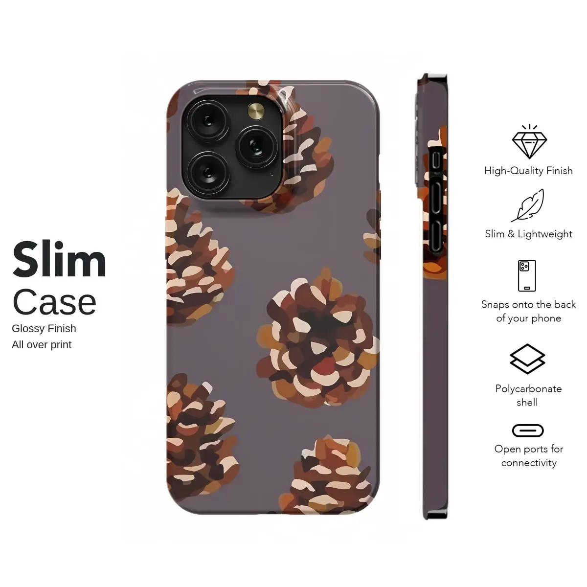 Embrace the cozy charm of the season with this rustic pinecone design. Featuring an elegant pattern of stylized pinecones in warm, earthy tones of brown, cream, and white, this design is set against a deep, muted purple background. The illustrative, block-color style gives it a modern yet timeless woodland appeal, perfect for anyone who loves nature-inspired aesthetics.