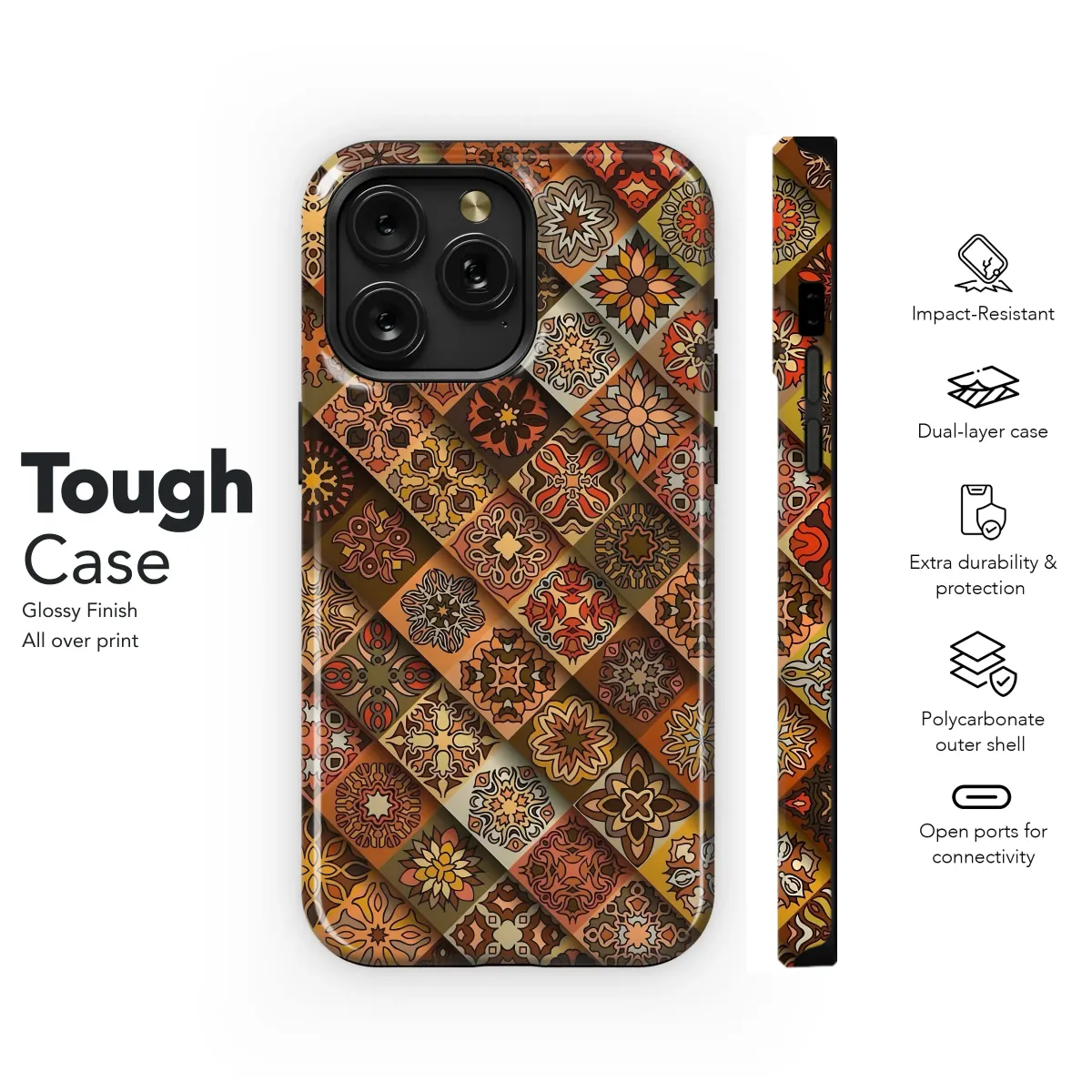Capture the essence of worldly travels and artisan craftsmanship with this breathtakingly intricate designer cover for your device. Inspired by the sun-baked terracotta tiles of a Moroccan souk and the timeless beauty of Portuguese Azulejo patterns, this design is a rich tapestry of culture and art. Each unique square in the geometric patchwork tells its own story, featuring mesmerizing mandalas and abstract floral motifs that draw the eye. The warm, earthy color palette—a sophisticated blend of burnt orange, deep sienna, rich brown, and mustard yellow—evokes a sense of rustic, vintage charm. A clever 3D-effect print adds incredible depth, making the tile mosaic appear layered and tactile, as if you could feel the texture of each handcrafted piece. This is more than just a protective skin for your gadget; it's a statement of personal style for the bohemian soul, the art lover, and the eclectic spirit. Guard your technology with a piece of wearable art that reflects a love for intricate detail and global aesthetics. This beautiful ethnic pattern makes for a truly unique gift for her, a thoughtful present for a travel enthusiast, or the perfect boho-chic accessory to elevate your everyday essentials. Wrap your device in this stunning visual journey and carry a piece of global artistry with you wherever you go.