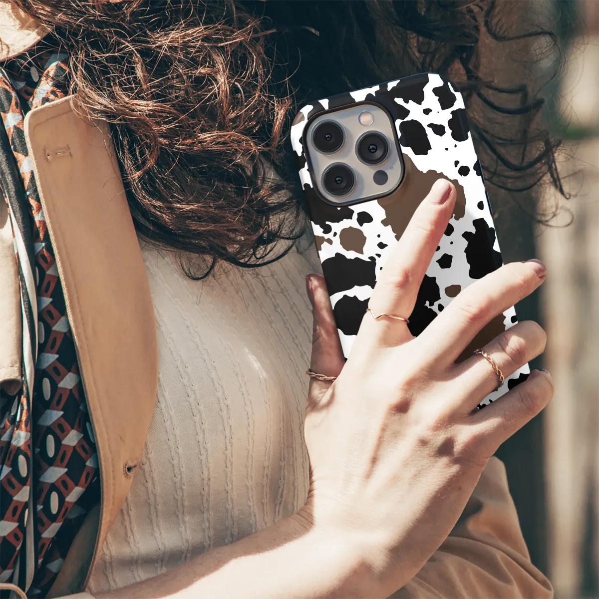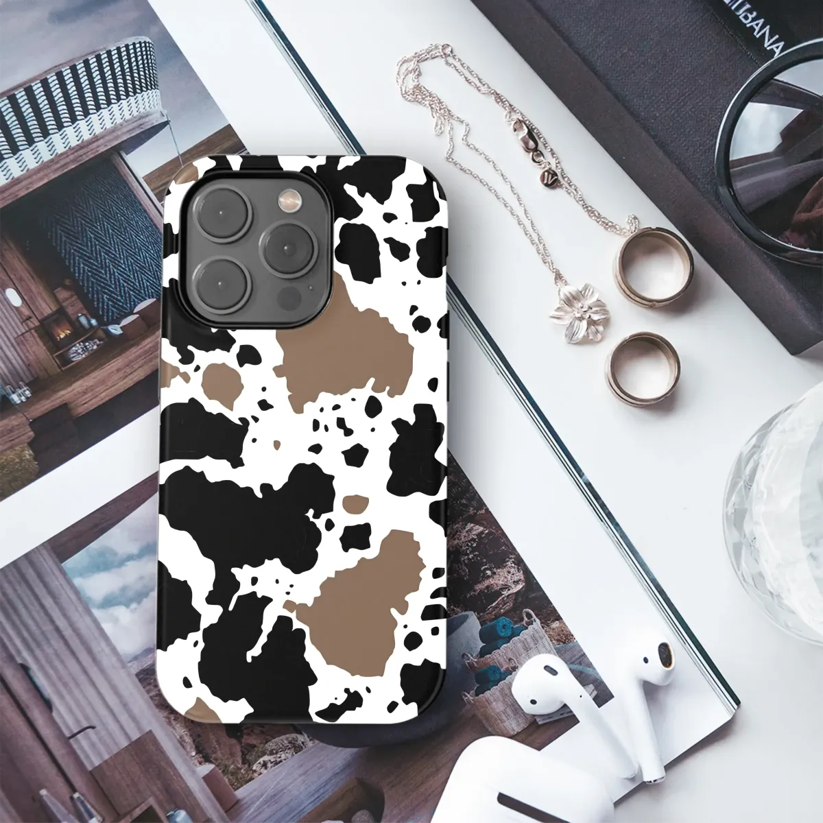 Embrace your inner free spirit with this captivating and rustic design, a celebration of untamed country charm and modern boho style. Bold, organic splotches of deep, velvety black and warm, earthy brown are scattered artfully across a crisp white canvas, creating a dynamic and eye-catching pattern reminiscent of a classic cowhide. This isn't just a design; it's a statement of individuality and a nod to the cozy, down-to-earth aesthetic of farmhouse living. Feel the call of the open range and the warmth of a country sunset encapsulated in this beautiful artwork. Imagine the texture and warmth it brings to your daily essentials, adding a touch of yeehaw vibe and western chic to your personal style. The neutral color palette, featuring striking brown, black, and white tones, ensures it pairs effortlessly with any outfit or accessory, making it a versatile and timeless piece of art. It's the perfect gift for the country girl at heart, the urban cowgirl, or anyone who appreciates a bold, graphic pattern with a story to tell. Let this unique animal print express your playful personality and love for all things rustic and beautiful, turning an everyday item into a special piece of portable art that feels both trendy and classic.