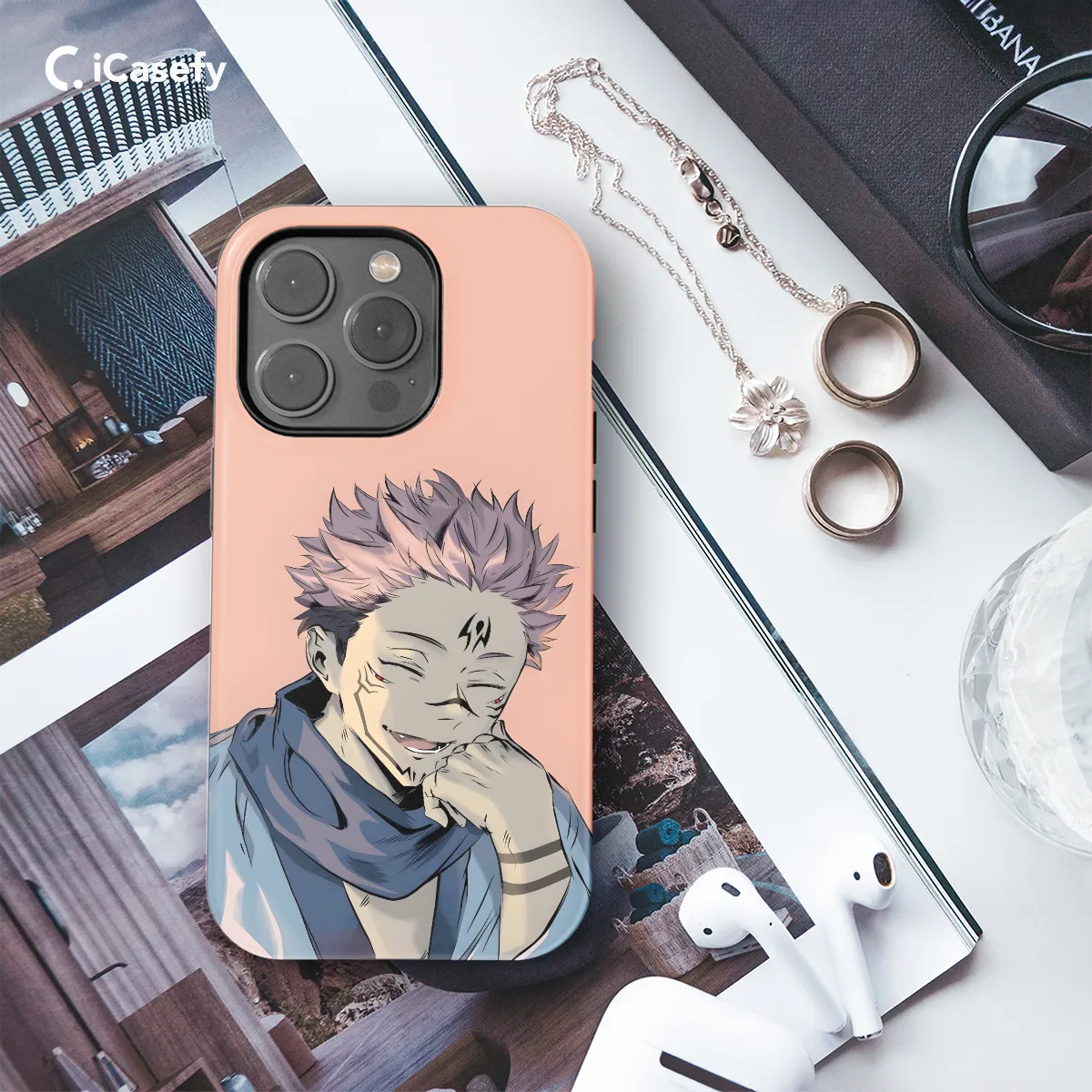 Embrace the fierce presence of Ryomen Sukuna with this striking phone case. Designed to fit various iPhone, Samsung, Pixel, and other models, this case showcases the malevolent sorcerer in all his glory. Durable and lightweight, it protects your device while enhancing its style with its vibrant design. Unleash your inner Sukuna and make a bold statement with this iconic anime accessory.