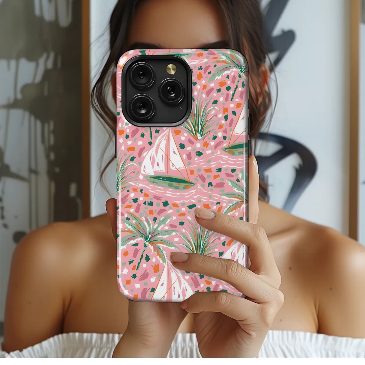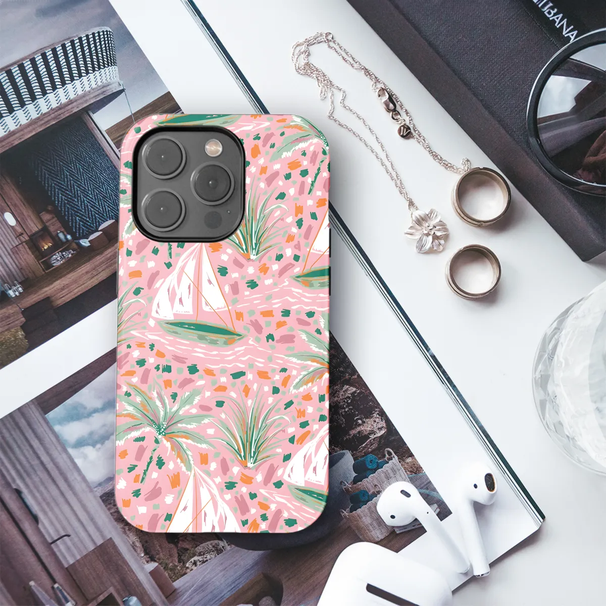 Escape into tranquil waters with our Sailboat Palm Phone Case. Painted with vibrant hues, this case captures the essence of coastal charm. The sailboat glides effortlessly against a backdrop of lush palm trees, evoking a sense of serenity and wanderlust. Available for a wide range of iPhone, Samsung, and Pixel models, this case safeguards your precious device while adding a touch of paradise to your everyday adventures.