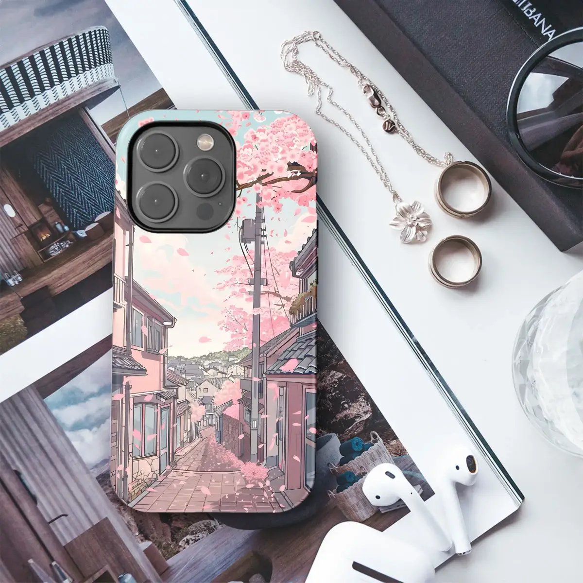 Embrace the serene beauty of spring with this captivating design. Imagine strolling down a charming, blossom-lined street, where delicate pink petals dance on the gentle breeze. This artwork captures the ethereal essence of a tranquil Japanese alleyway, bathed in the soft light of a picturesque day. The pastel hues and intricate details create a dreamy atmosphere, perfect for adding a touch of whimsical elegance to your everyday life. This high-resolution print is meticulously crafted to ensure vibrant colors and exceptional clarity, preserving every detail of this stunning illustration. It's a unique and stylish accessory, sure to spark conversations and compliments. A perfect gift for yourself or a loved one who appreciates art, serenity, and the beauty of Japanese aesthetics. This exquisite design transforms any surface into a miniature work of art, making it an ideal choice for those seeking a sophisticated and eye-catching accessory. Transform your personal style with this delightful piece that beautifully blends artistry and practicality, a stunning representation of peaceful spring charm. Add a touch of delicate artistry to your world today.