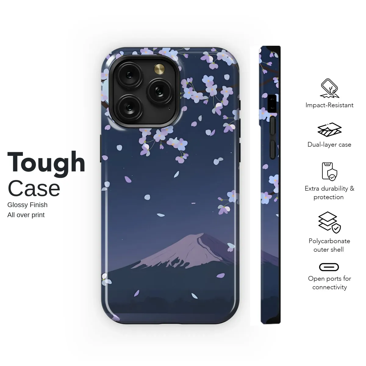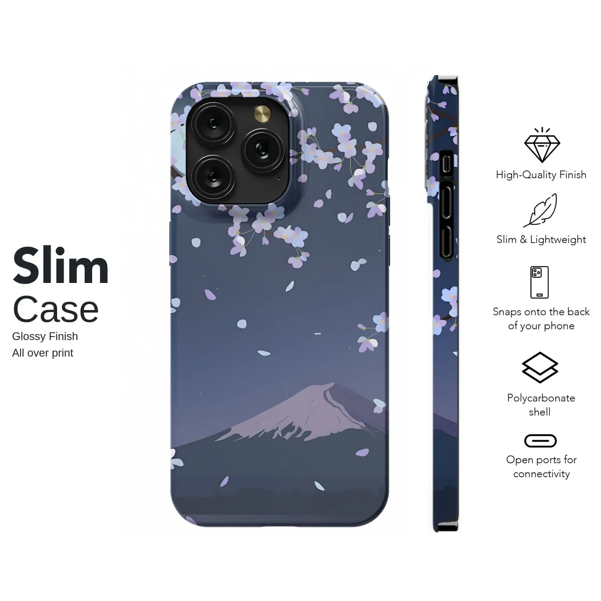 Adorn your everyday carry with this serene and captivating art print, featuring a minimalist yet evocative landscape. A majestic, snow-capped mountain stands silhouetted against a twilight sky, reflected softly in the still waters below. Delicate cherry blossoms, rendered in dreamy pastel hues, frame the scene, their petals gently drifting in the night air. The soft glow of a full moon peeks through the blossoms, casting a tranquil light on the entire composition. This aesthetic design evokes a sense of peace and wonder, perfect for anyone seeking a touch of nature's beauty in their daily life. Ideal for lovers of Japanese art, nature enthusiasts, or those who appreciate calming, minimalist aesthetics. Use this artistic piece to create unique stationery, a personalized gift, or simply to add a touch of elegance to your tech. Embrace the tranquility of this floral mountain design – a small piece of art for your everyday. Keywords: Floral Art, Mountain Landscape, Minimalist Design, Japanese Art, Cherry Blossoms, Nature Illustration, Aesthetic Art, Twilight Scene, Pastel Colors, Serene Art.