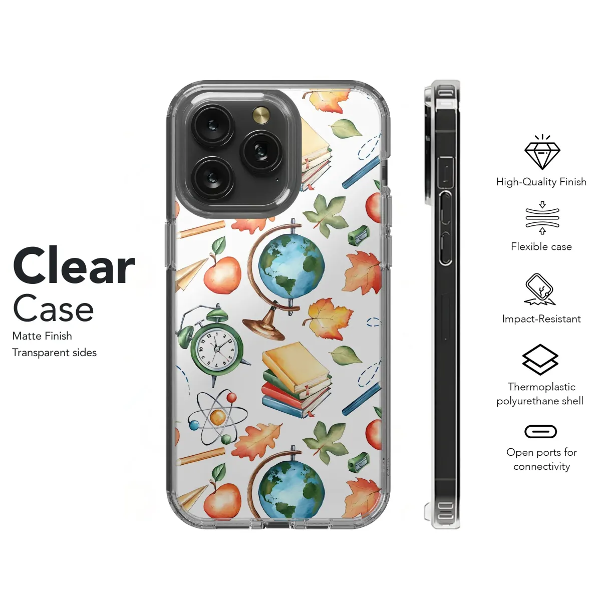 Adorn your device with this charming "Back to School" themed design! Featuring a delightful watercolor pattern of classic school icons, including stacked books, apples, globes, vintage alarm clocks, pencils, and colorful autumn leaves, this artwork evokes a sense of nostalgia and academic charm. The intricate details and vibrant colors of the watercolor illustrations bring a touch of artistry to your everyday tech. Perfect for students, teachers, or anyone who appreciates a touch of scholastic flair, this design is sure to make a statement. Celebrate learning and education with this unique and eye-catching print. Great gift idea for graduation, teacher appreciation or back to school season! Add a touch of academic elegance to your tech accessory with this adorable pattern.