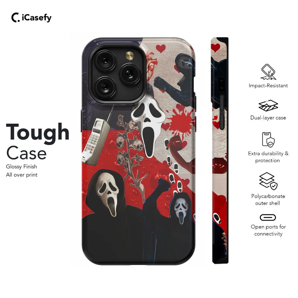 Immerse yourself in the eerie world of horror with a chilling scream mask collage phone case. This accessory features a haunting compilation of scream mask imagery, evoking suspense and mystery. Carry a touch of cinematic thrill with you wherever you go, letting your device become a statement of bold and chilling style with this haunting collage case.