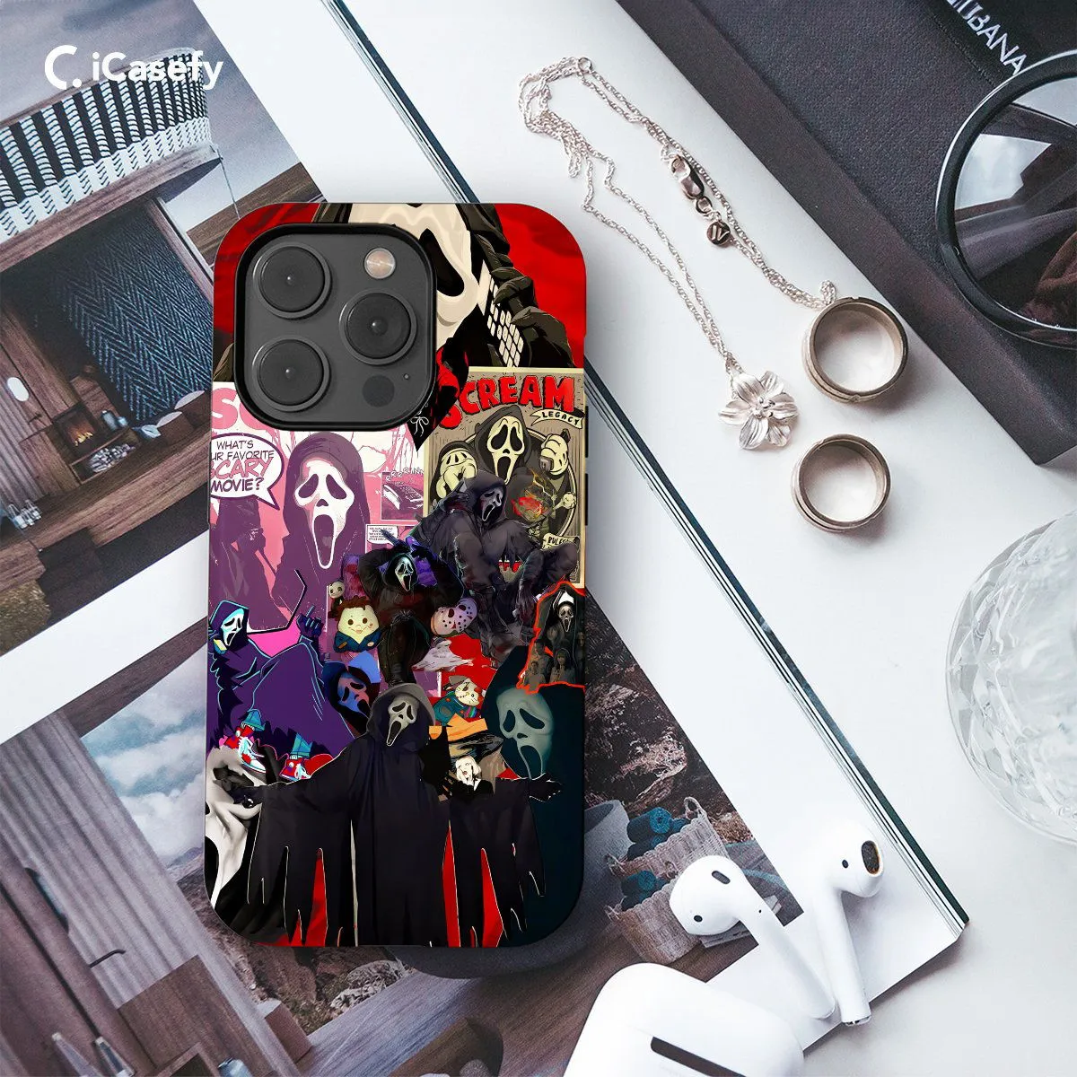 Embrace the eerie allure of the iconic Scream mask with our exclusive collage phone case. Featuring a striking array of Scream mask imagery, this case combines chilling aesthetics with practical device protection. Precision-cut for easy access to ports and buttons, and crafted from durable materials for reliable defense against everyday wear and tear. Make a bold statement with this unique accessory that captures the essence of suspense and mystery. Upgrade your phone's style today!