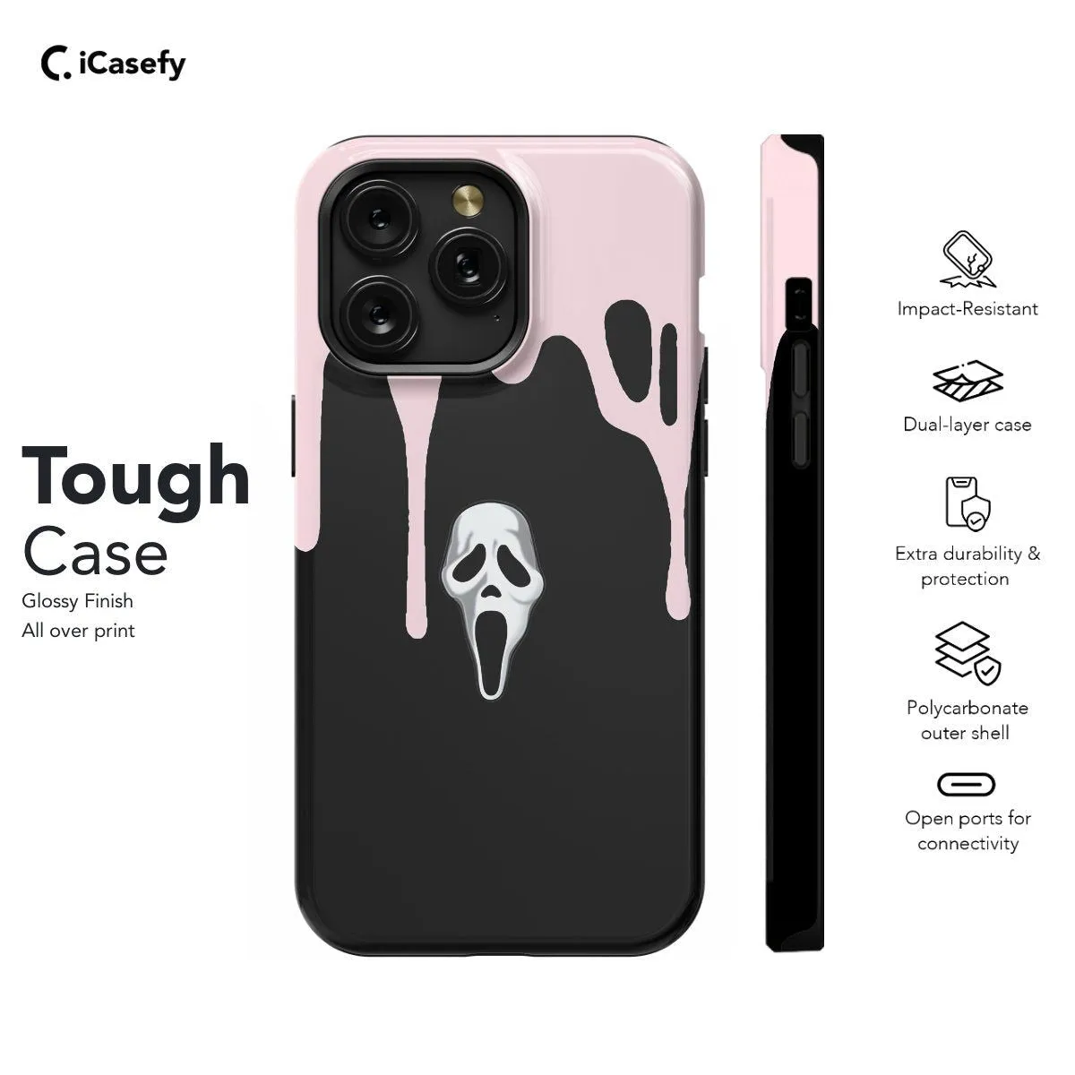 Capture the chilling essence of horror with this haunting phone case featuring the iconic Scream mask. Inspired by the classic horror film, this case evokes a sense of suspense and intrigue. Carry a touch of eerie mystery with you wherever you go and let your device reflect your love for the spine-tingling world of horror with this striking accessory.