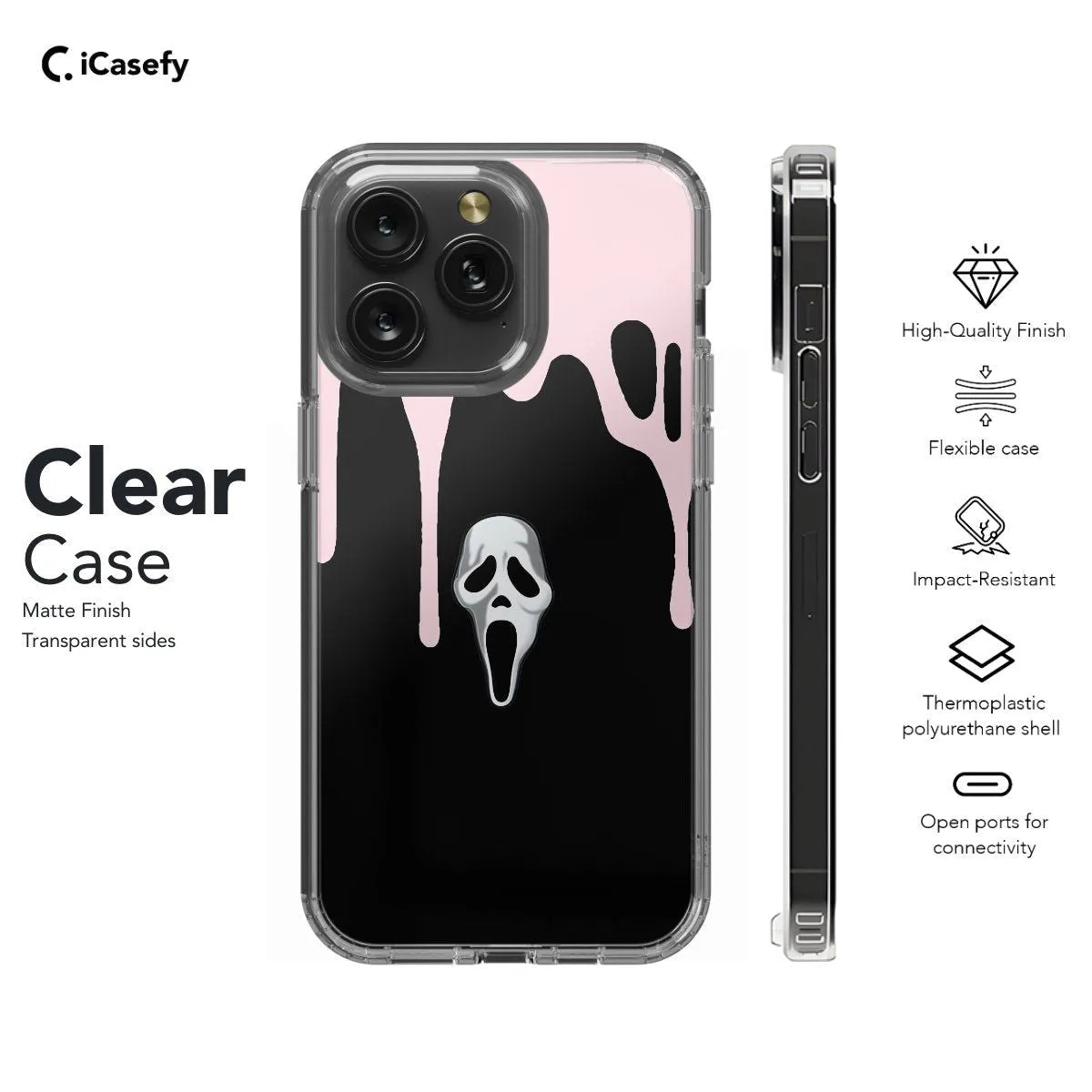 Capture the chilling essence of horror with this haunting phone case featuring the iconic Scream mask. Inspired by the classic horror film, this case evokes a sense of suspense and intrigue. Carry a touch of eerie mystery with you wherever you go and let your device reflect your love for the spine-tingling world of horror with this striking accessory.