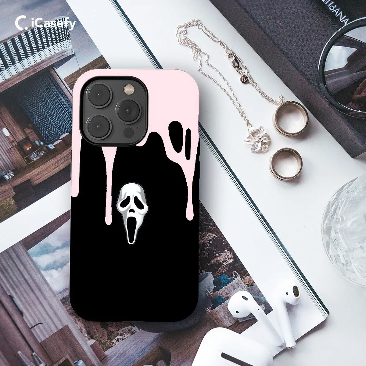 Capture the chilling essence of horror with this haunting phone case featuring the iconic Scream mask. Inspired by the classic horror film, this case evokes a sense of suspense and intrigue. Carry a touch of eerie mystery with you wherever you go and let your device reflect your love for the spine-tingling world of horror with this striking accessory.