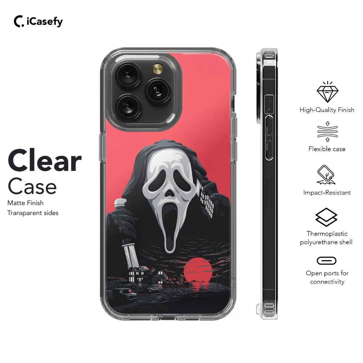 Embrace the chilling allure of the Scream mask with a striking twist of black and red with this haunting phone case. Inspired by the iconic horror film, this case exudes a sense of suspense and intrigue, heightened by the bold color combination. Carry a touch of eerie mystery with you wherever you go and let your device reflect your love for the spine-tingling world of horror with this striking accessory.
