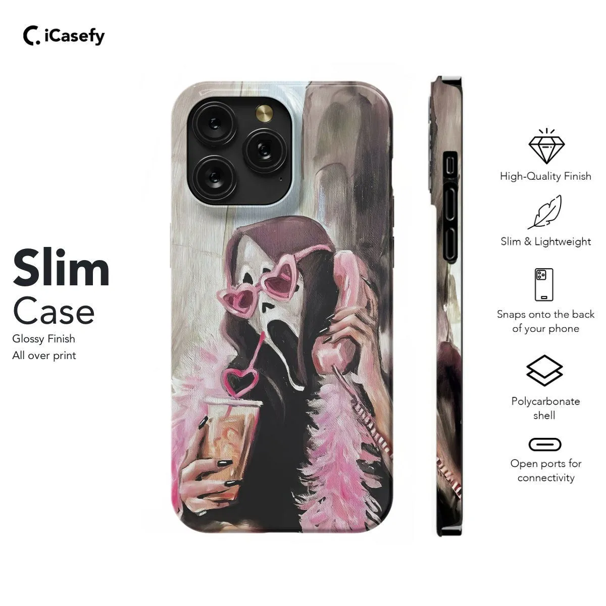 Evoke the chilling allure of the iconic Scream Mask with this striking phone case. Featuring the haunting visage of the mask against a dark backdrop, this accessory captures the spine-tingling essence of the classic horror film. Carry a touch of cinematic terror with you wherever you go, letting your device become a tribute to the enduring legacy of horror and suspense.