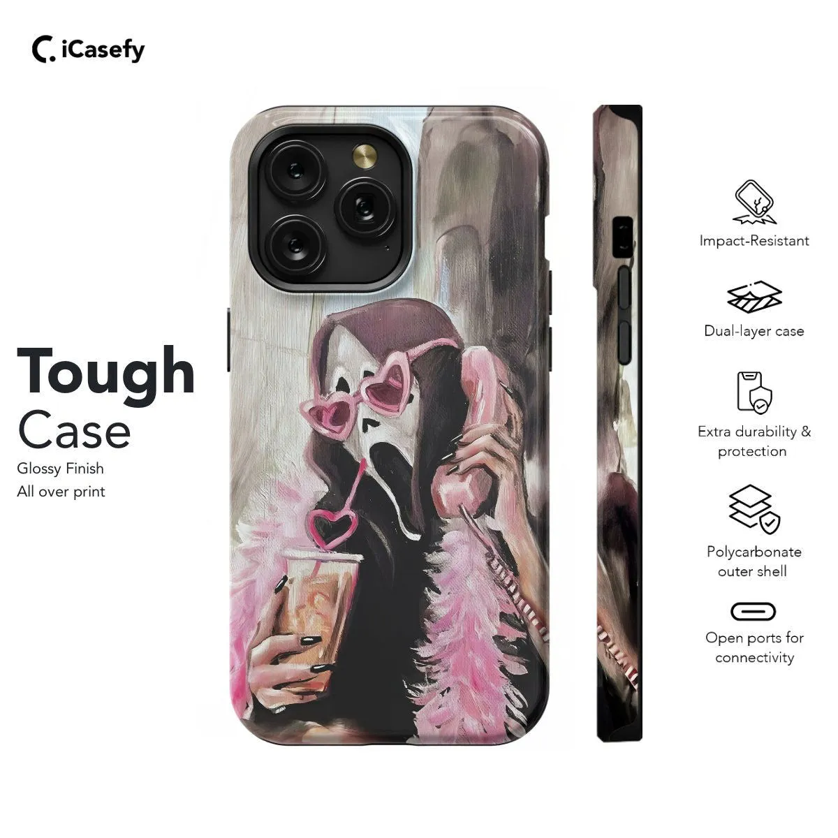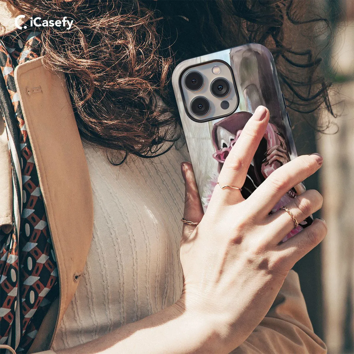 Evoke the chilling allure of the iconic Scream Mask with this striking phone case. Featuring the haunting visage of the mask against a dark backdrop, this accessory captures the spine-tingling essence of the classic horror film. Carry a touch of cinematic terror with you wherever you go, letting your device become a tribute to the enduring legacy of horror and suspense.