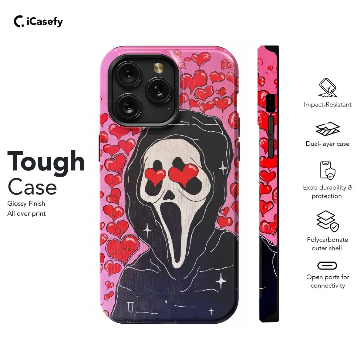 Merge the haunting allure of the Scream mask with the concept of love with this intriguing phone case. Featuring the iconic Scream mask juxtaposed with the word "Love," this accessory creates a captivating contrast between horror and affection. Carry a touch of enigmatic charm with you wherever you go, letting your device become a symbol of the complexity of human emotions with this unique and thought-provoking case.