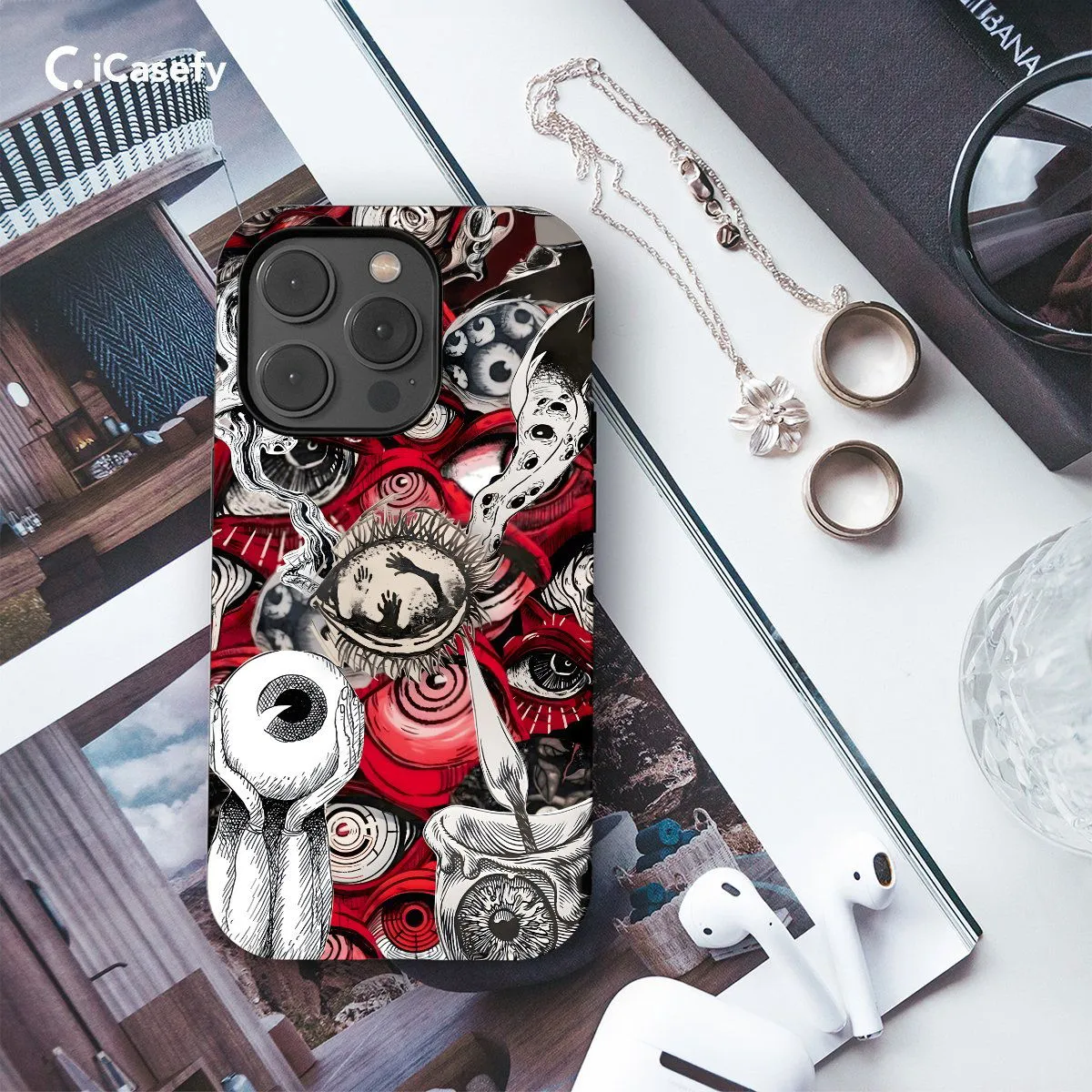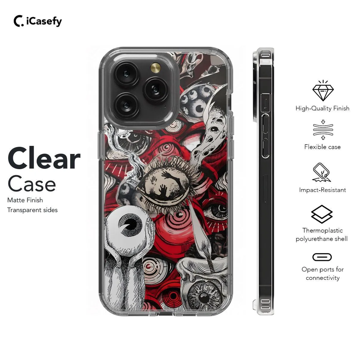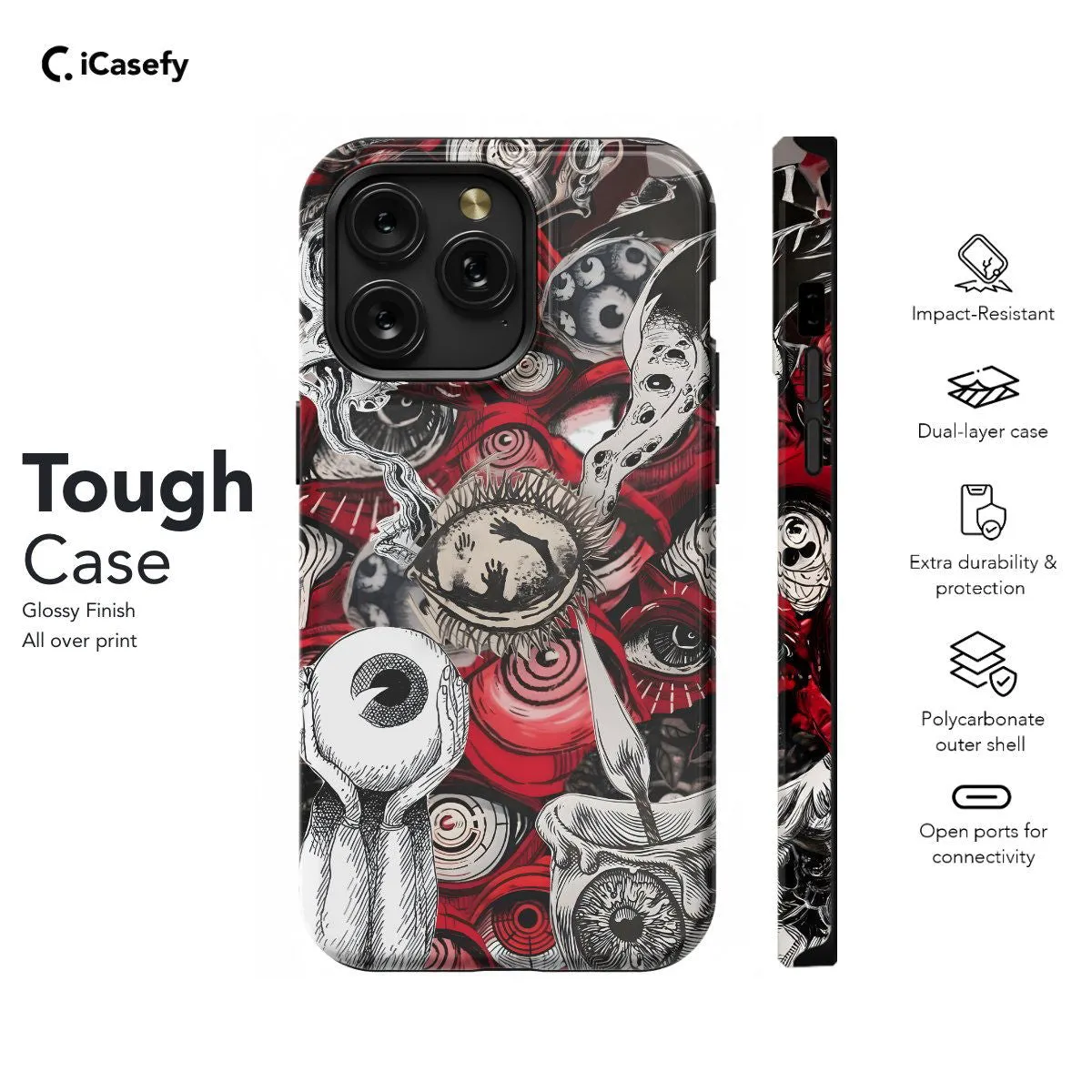 Description: Delve into the depths of the macabre with our Screepy Collage Red Eye Witchy Hand Phone Case. This spine-chilling collage features an array of eerie elements, including a witch's hand adorned with a piercing red eye, creating a hauntingly unique design. Crafted for both style and protection, it safeguards your phone while adding a touch of sinister charm. With precise cutouts for ports and buttons, it ensures seamless functionality. Embrace the dark side of style and elevate your phone's look with our Screepy Collage Red Eye Witchy Hand Phone Case today!