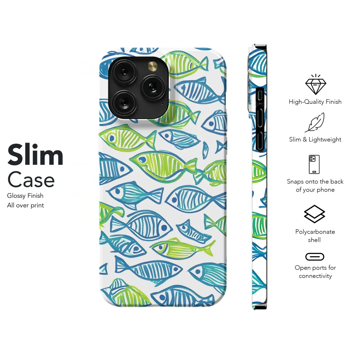 Dive into a sea of style with this charming aquatic design! This vibrant, hand-drawn-inspired pattern features schools of whimsical fish in shades of calming blues and fresh greens, perfect for adding a splash of coastal flair to your everyday essentials. The playful illustration style lends a touch of childlike wonder, making it ideal for those who appreciate unique and artistic designs. This lively artwork is perfect for anyone seeking a marine-themed aesthetic, a nautical vibe, or simply a fun and eye-catching pattern to showcase their personality. Use this unique print to express your love for the ocean, your appreciation for whimsical art, or to simply add a touch of personalized charm to your tech accessories. Let these swimming designs bring a fresh and delightful perspective to your mobile style, turning your device into a miniature underwater masterpiece. Shop now and let this aquatic artwork make a statement!