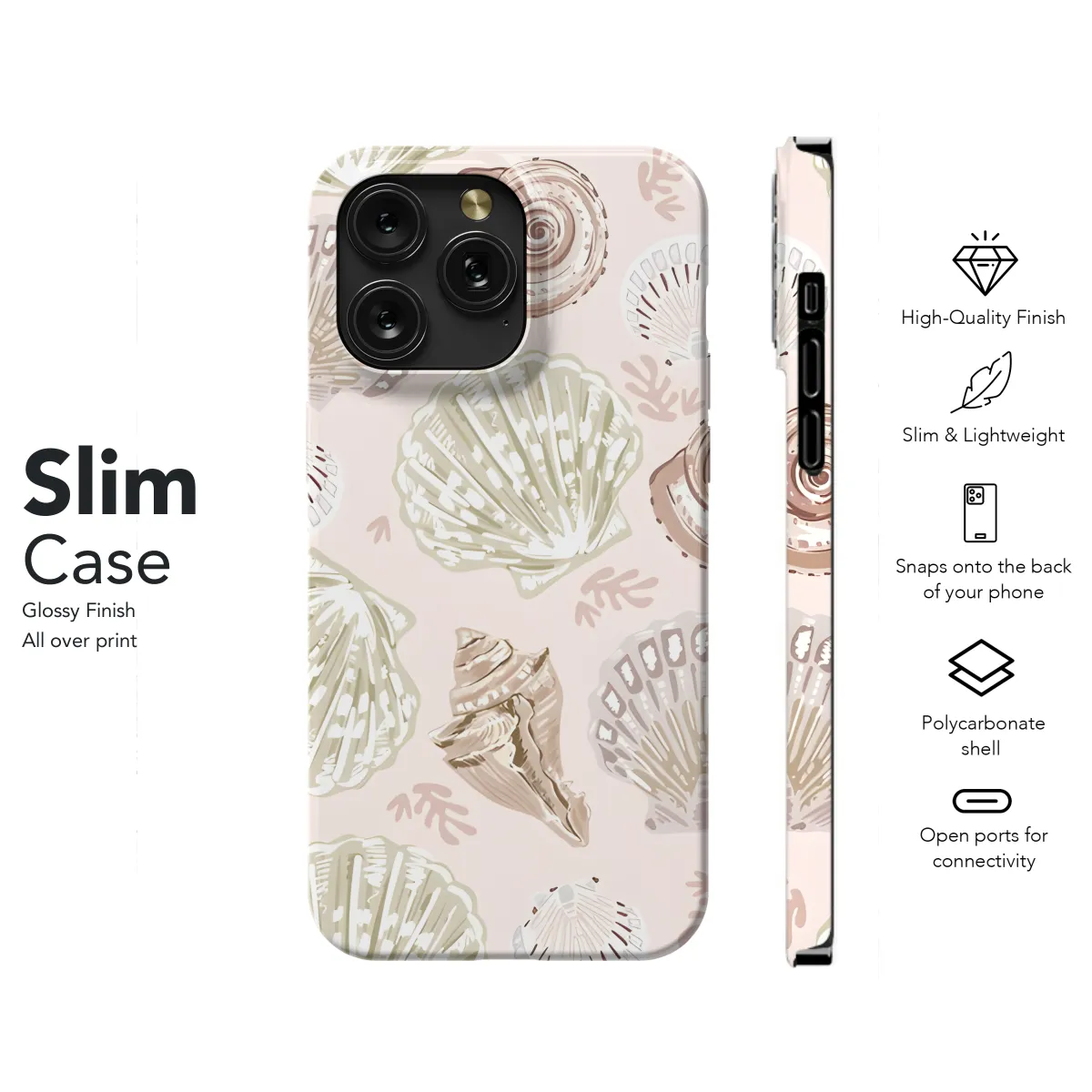 Encase your phone in captivating beauty with our Sea Shell Seamless Pattern Phone Case. Its vibrant design features an intricate arrangement of seashells, capturing the essence of tranquil coastal living. Protect your device in style, transforming it into a wearable work of art that evokes the serenity of the ocean.