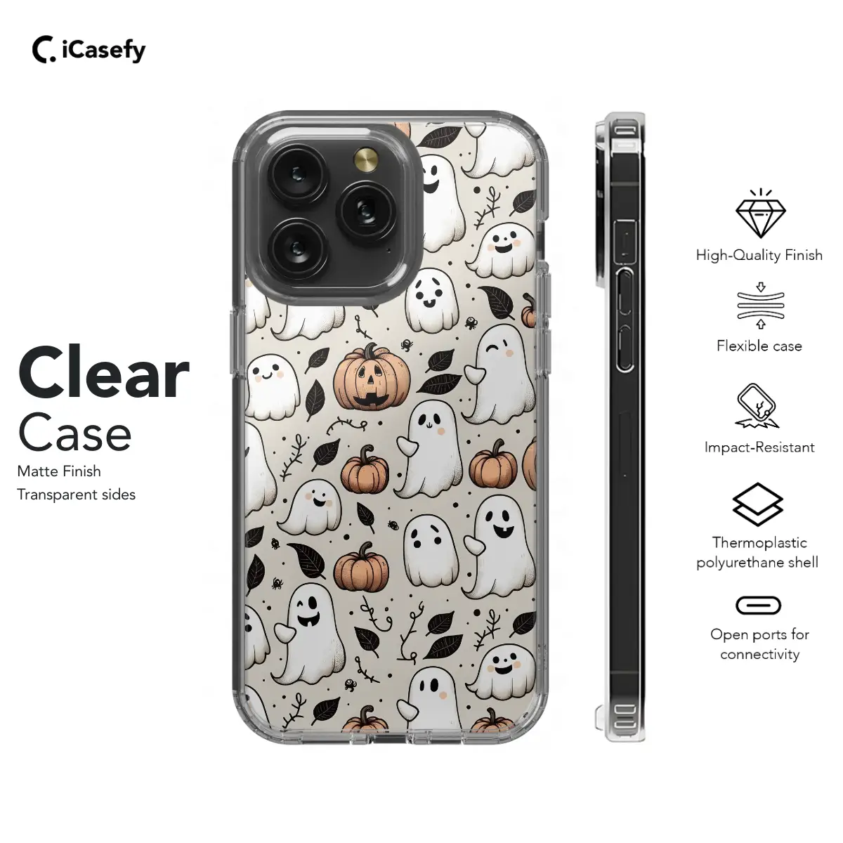 Prepare to enchant the digital realm with our ethereal Halloween phone case. Featuring an array of ghostly figures and a hauntingly carved pumpkin, this accessory will cast a spell on your device. Its seamless design complements your phone's sleek aesthetic, while the durable construction protects it from any tricks or treats. Available for iPhone, Samsung, and Pixel models, this phone case is the ultimate Halloween accessory to ward off digital goblins.