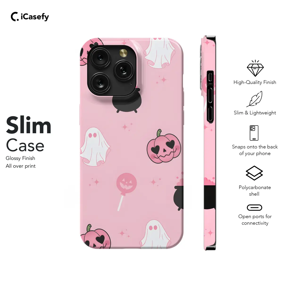 Indulge in the spooky spirit with our Seamless Ghost Pumpkin Pink Halloween Phone Case! Crafted from premium materials, this case shields your iPhone, Samsung, or Pixel from bumps and scratches while adding a touch of Halloween magic to your device. The vibrant pink hue and adorable ghost pumpkin pattern will turn heads wherever you go. Protect your phone in style this Halloween with this festive and durable phone case!