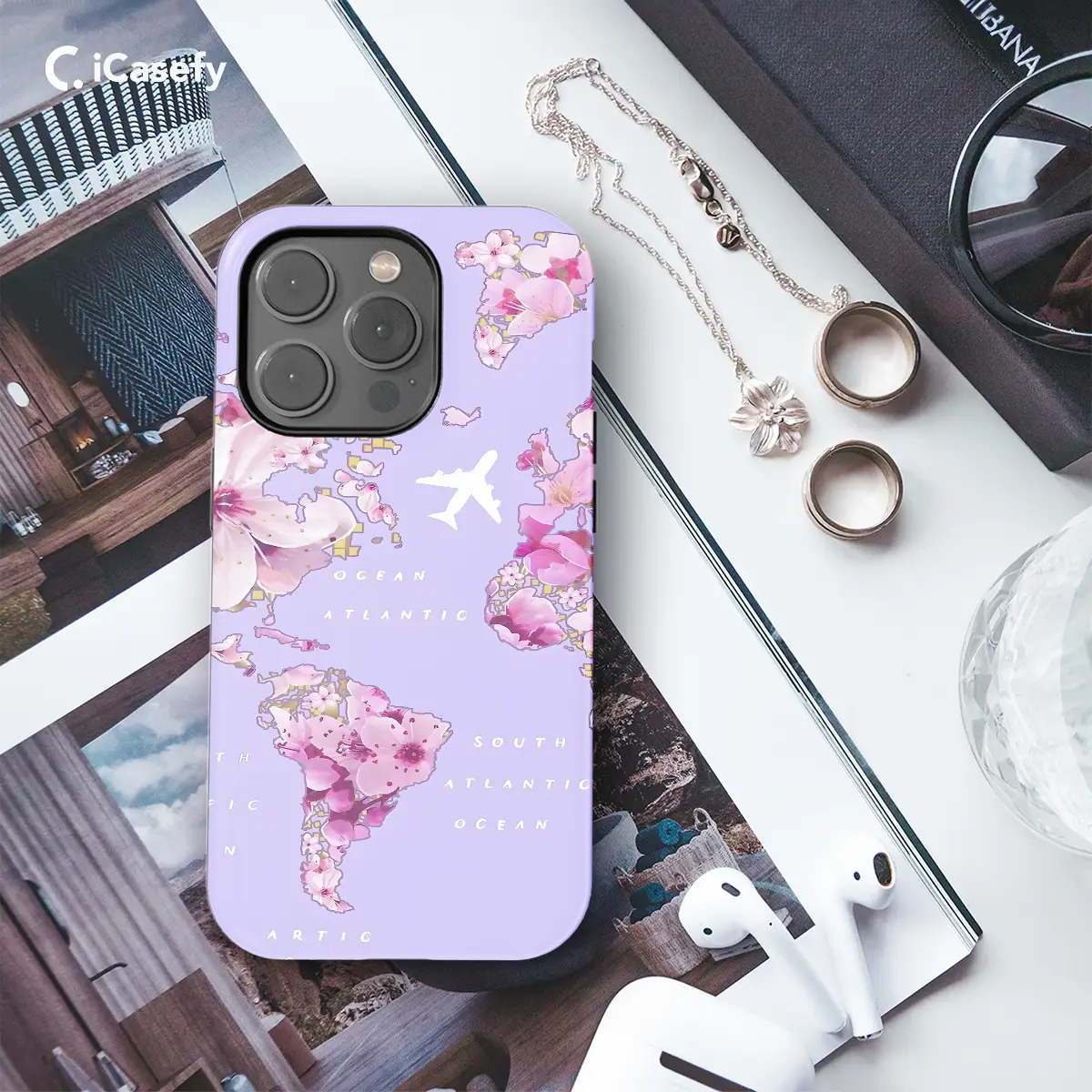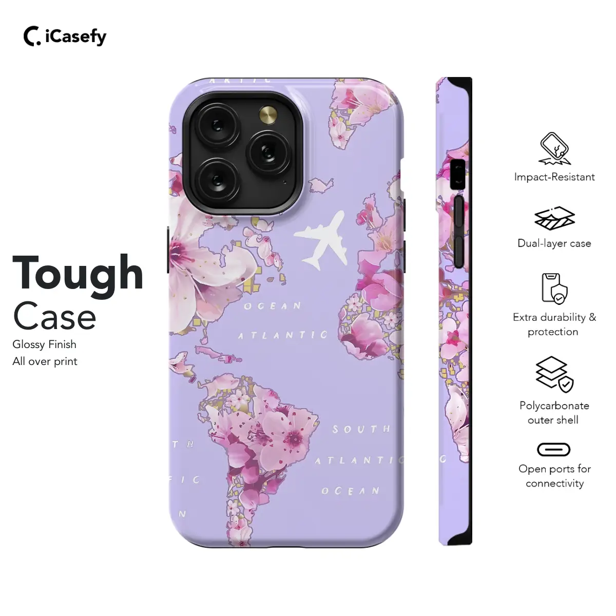Escape to distant shores with our Seamless Lovely Floral Travel Map Phone Case! Embellished with a charming floral print, this case transports you to faraway places, from the Atlantic Ocean's depths to the soaring heights of commercial planes. Its seamless design effortlessly blends style and protection, safeguarding your device as you embark on your next adventure.