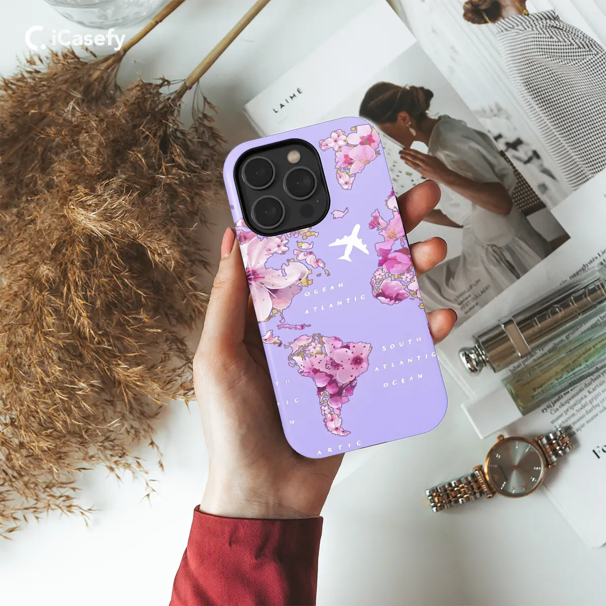 Escape to distant shores with our Seamless Lovely Floral Travel Map Phone Case! Embellished with a charming floral print, this case transports you to faraway places, from the Atlantic Ocean's depths to the soaring heights of commercial planes. Its seamless design effortlessly blends style and protection, safeguarding your device as you embark on your next adventure.