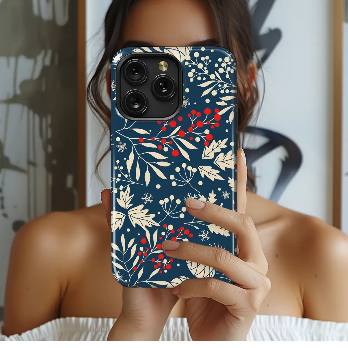 Embrace the winter enchantment with our Seamless Winter Pattern case! A mesmerizing fusion of fir cones, vibrant holly, and luscious berries adorns the case, embodying the festive spirit. This captivating design will transform your phone into a winter wonderland, evoking the magic of the season with every glance.