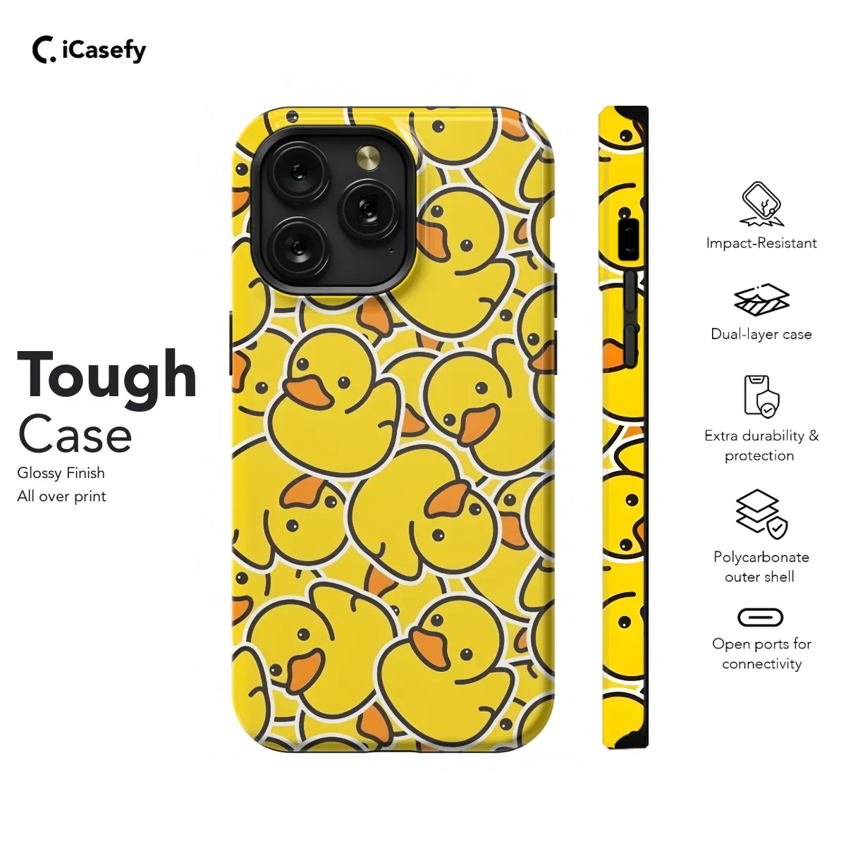 **Protect Your Phone with a Splash of Quack-tivity!** Our Seamless Yellow Ducks phone case combines ultra-protection with an irresistible dose of cuteness. Constructed with premium materials, this case seamlessly hugs your iPhone, Samsung, Pixel, or any other compatible device, shielding it from scratches, bumps, and falls. Featuring an adorable army of yellow ducks, our case adds a touch of whimsy to your daily essentials. The vibrant yellow hue and playful design will brighten up any space, bringing a smile to your face with every glance. Whether you're battling screen shatter or simply want to show off your love for our feathered friends, our Seamless Yellow Ducks Duck Phone Case is the perfect choice. Add a splash of quack-tivity to your mobile companion today!