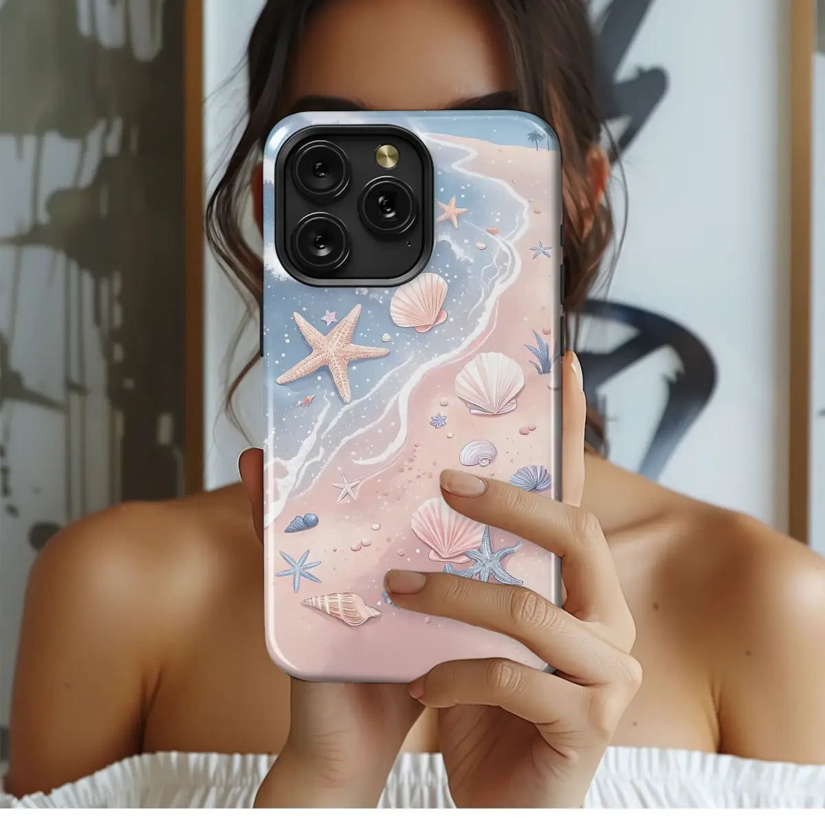 Escape to a serene shoreline where the sand blushes in soft pastel pink and the ocean whispers in hues of dreamy periwinkle blue. Let your imagination wander along the water's edge, where gentle foam kisses the shore, leaving behind a treasure trove of delicate seashells and whimsical starfish. This enchanting watercolor design captures a moment of pure coastal magic, a perfect slice of a mermaidcore fantasy where tiny pearls of sea spray sparkle in the sun. The soft-focus, dreamy art style brings a sense of calm and wonder, turning your most essential daily companion into a beautiful piece of portable paradise. It's more than just a stylish accessory; it’s a tiny window to a tranquil world, a daily reminder to breathe and find your moment of peace amidst the hustle. Perfect for the beach lover, the dreamer, or anyone who adores a cute pastel aesthetic, this gorgeous design makes an unforgettable tech gift for her, a thoughtful best friend present, or a wonderful treat to carry the calm of the ocean with you, wherever you go. Embrace this little piece of seaside serenity and let your day be touched by the magic of the tide.