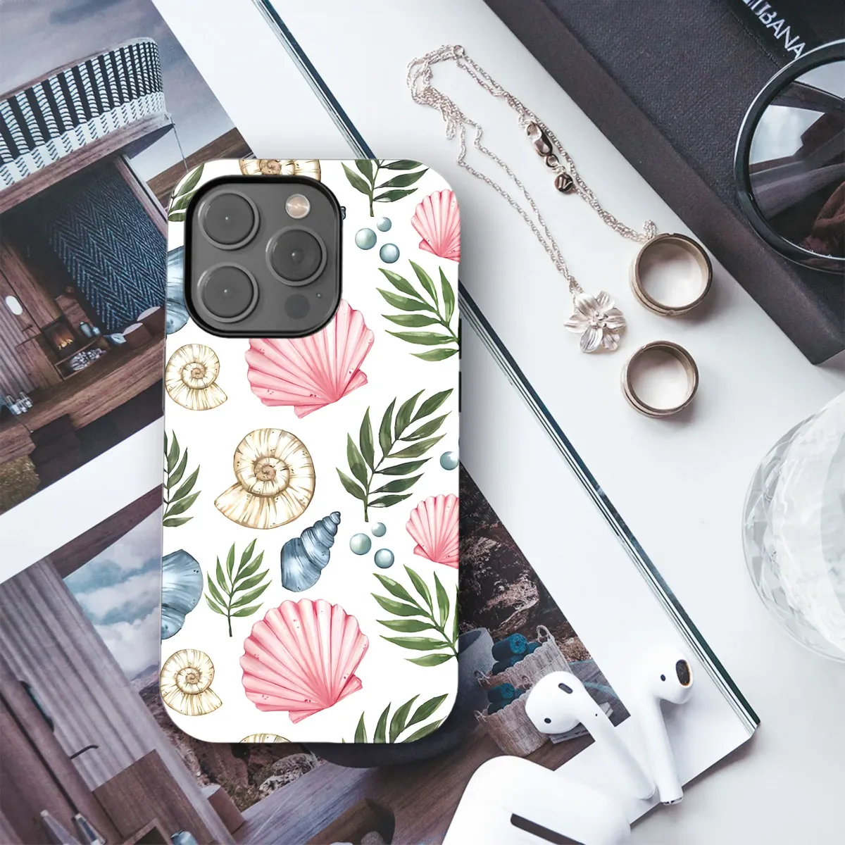 Dive into summer vibes with this captivating coastal pattern! This design features a delightful array of watercolor seashells in soft pinks, ocean blues, and natural tans, complemented by lush tropical foliage and shimmering pearl accents. Evoking a sense of seaside serenity, this vibrant design is perfect for bringing a touch of beachy elegance to your everyday essentials. Use this unique art for your next art project. Ideal for those who love nautical themes, beach decor, summer aesthetics, and ocean-inspired designs. Get your device adorned with this aesthetic and tropical art print! Perfect for adding a touch of seaside charm and a summery feel, this piece makes a stylish statement and a thoughtful gift for ocean enthusiasts. Embrace the beauty of the sea and let your items shine with this exquisite seashell artwork.
