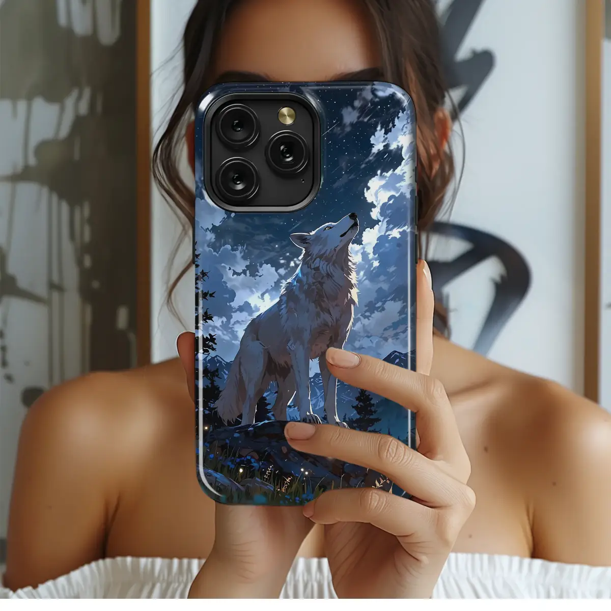 Embrace the wild spirit and carry a slice of the celestial wilderness with you wherever you go. This enchanting artwork captures a lone wolf, its soulful howl rising to a sliver of a crescent moon under a breathtaking starry night. A shooting star streaks across the deep indigo canvas, a fleeting wish caught in a moment of pure magic, while dramatic, moonlit clouds drift over snow-dusted mountains and silent pines. This isn't just a beautiful nature scene; it's a feeling—a connection to the untamed, the mystical, and the serene power of the wild. The stunning anime-style illustration transforms your most essential daily companion into a portal to another world, a constant reminder of inner strength and freedom. Crafted for the dreamer, the stargazer, and the free spirit, this design serves as a soulful guardian, wrapping your device in the protective magic of the forest and the cosmos. Let this pocket-sized masterpiece of fantasy art be your personal totem, a beautiful piece of the untamed world that fits perfectly in the palm of your hand. It's the perfect aesthetic gift for any nature lover seeking to adorn their world with a touch of ethereal, woodland magic.