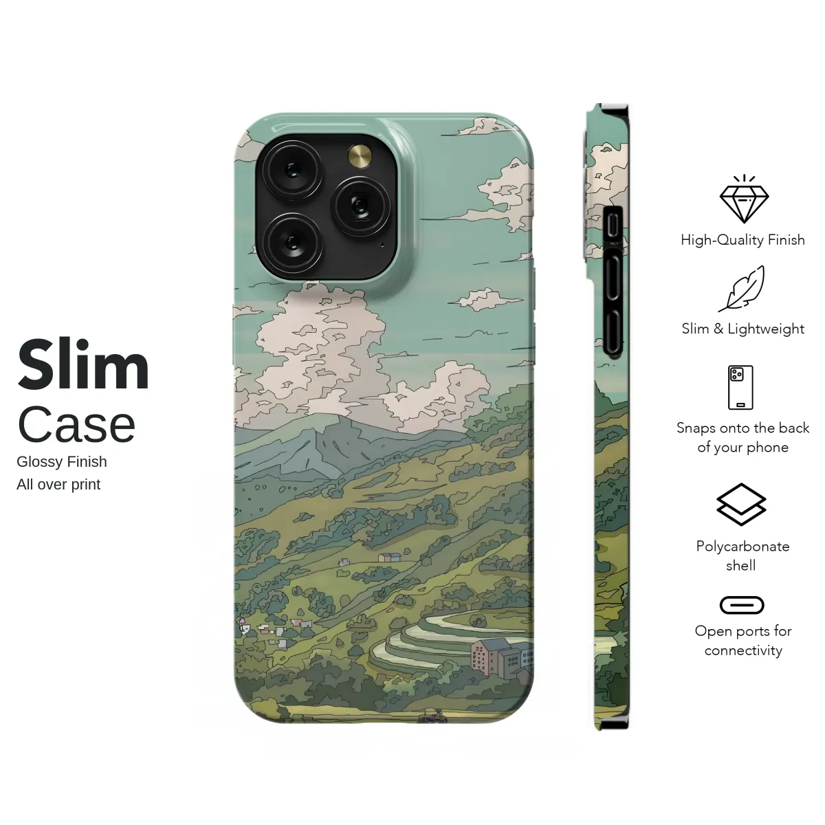 Embrace tranquility with this idyllic landscape design. Featuring a charming village nestled amongst rolling hills and terraced rice paddies under a soft, dreamy sky, this design evokes a sense of peace and serenity. Perfect for those who appreciate natural beauty and understated elegance, the muted color palette and stylized artwork create a sophisticated and calming aesthetic. This unique illustration is digitally printed using high-quality inks for vibrant, long-lasting color and detail. Its lightweight construction ensures easy application and a sleek, slim profile. Showcase your individual style and add a touch of artistic charm to your everyday essentials. This beautiful artwork is a subtle statement piece that will turn heads without being overly loud. Upgrade your personal style with this unique and artistic accessory, making a beautiful statement that reflects your love for nature and thoughtful design. The image is printed directly onto the item, ensuring a clear and vibrant image, resistant to scratches and fading. Express your individuality and bring a piece of artistry into your daily life. This stunning design is a conversation starter and a testament to your refined taste.