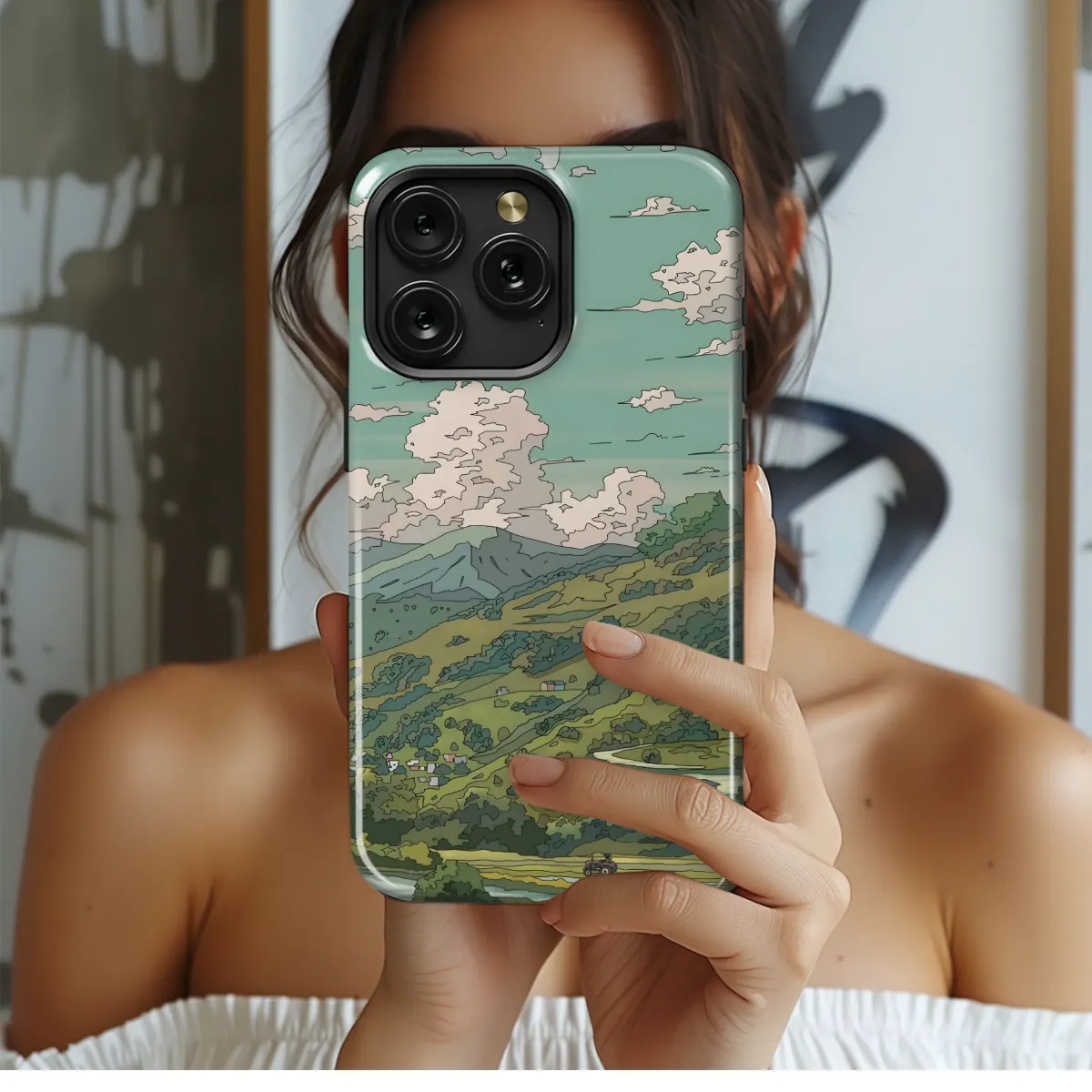 Embrace tranquility with this idyllic landscape design. Featuring a charming village nestled amongst rolling hills and terraced rice paddies under a soft, dreamy sky, this design evokes a sense of peace and serenity. Perfect for those who appreciate natural beauty and understated elegance, the muted color palette and stylized artwork create a sophisticated and calming aesthetic. This unique illustration is digitally printed using high-quality inks for vibrant, long-lasting color and detail. Its lightweight construction ensures easy application and a sleek, slim profile. Showcase your individual style and add a touch of artistic charm to your everyday essentials. This beautiful artwork is a subtle statement piece that will turn heads without being overly loud. Upgrade your personal style with this unique and artistic accessory, making a beautiful statement that reflects your love for nature and thoughtful design. The image is printed directly onto the item, ensuring a clear and vibrant image, resistant to scratches and fading. Express your individuality and bring a piece of artistry into your daily life. This stunning design is a conversation starter and a testament to your refined taste.