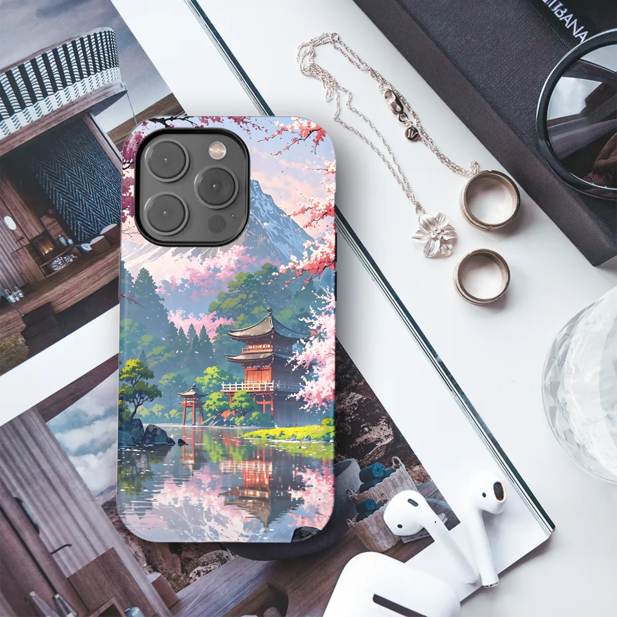 Immerse yourself in the tranquility of the Serene Sakura Temple with this enchanting phone case. Adorned with delicate cherry blossoms against a serene temple backdrop, this case exudes a touch of Japanese charm and serenity. Its sleek design complements any phone, offering a perfect blend of style and protection. Let the beauty of nature soothe your senses as you carry a piece of the Far East wherever you go.