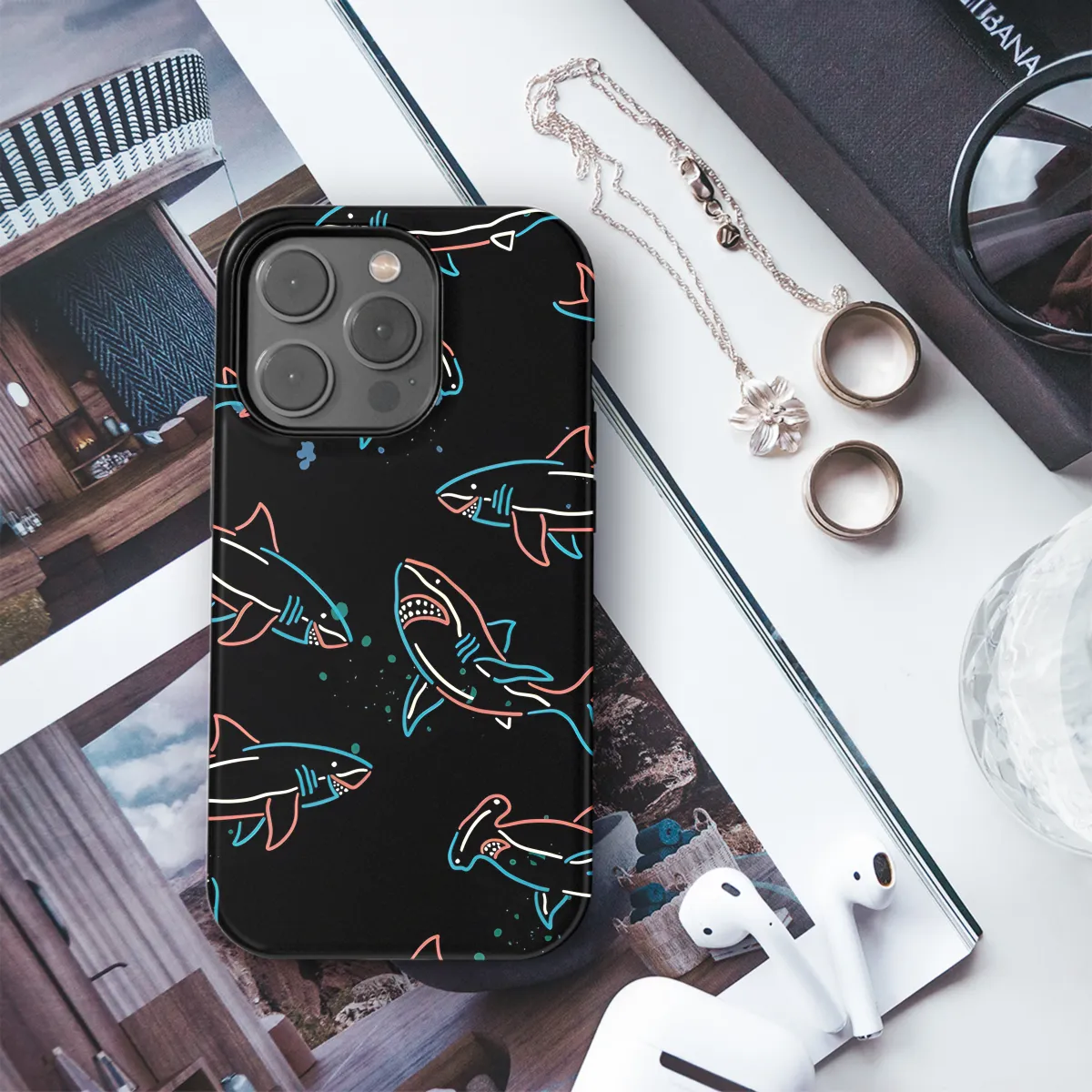 Defend your device in eye-catching style with our vibrant Shark Neon Pattern Phone Case. Its sleek design fits perfectly for iPhone, Samsung, or Pixel phones, providing reliable protection while making a bold statement. The eye-catching neon shark pattern adds a touch of whimsy to your everyday essentials.