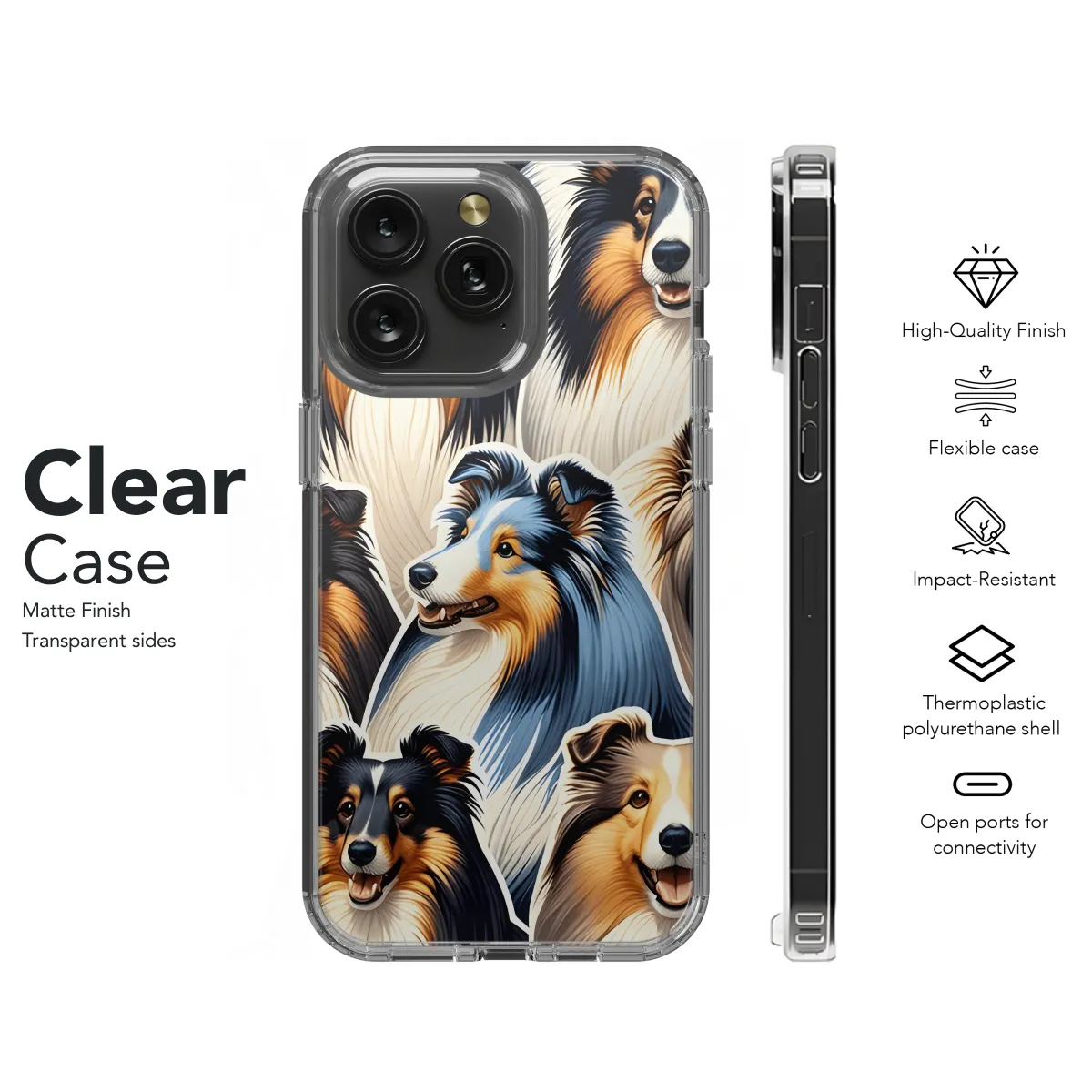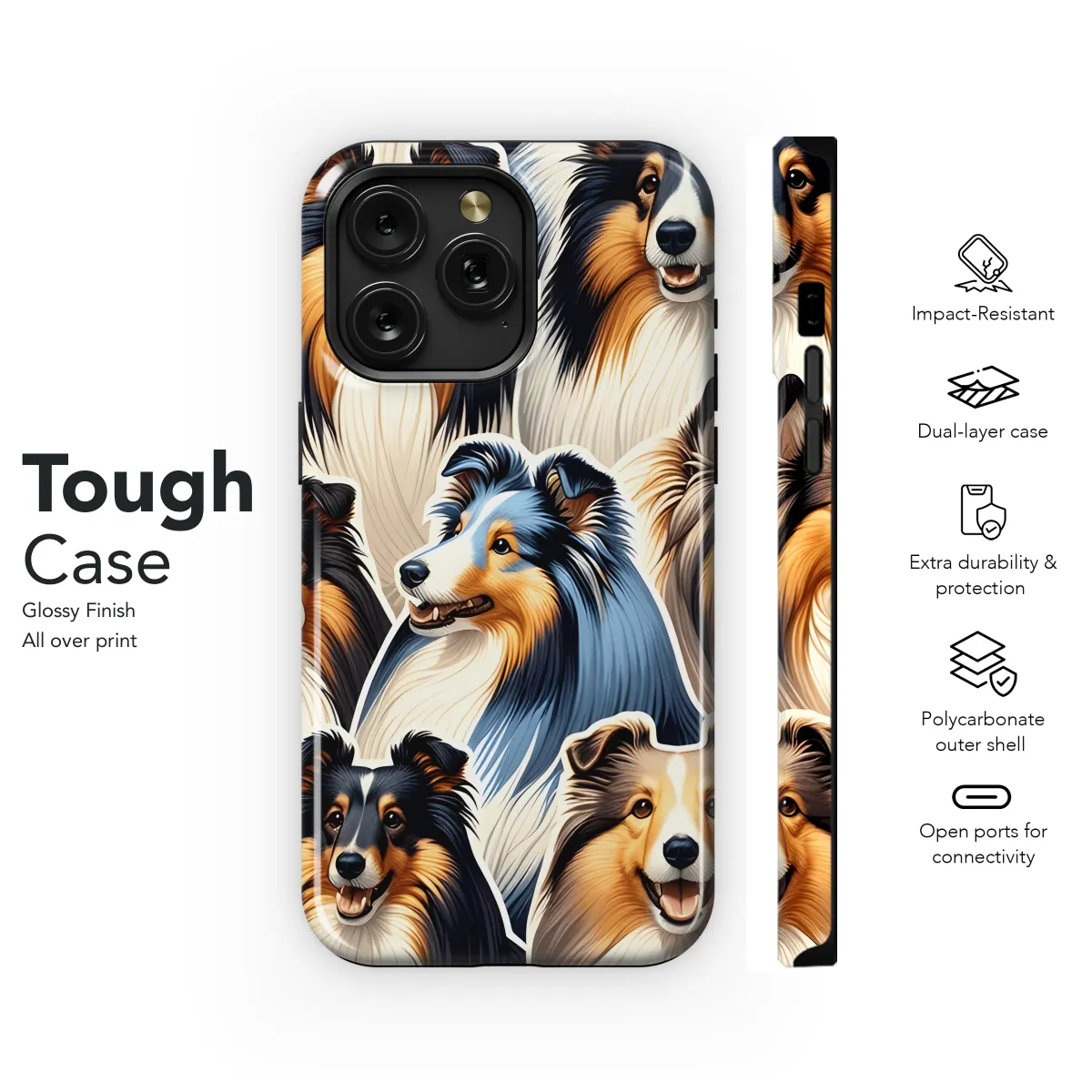 Protect your phone in style with our premium Sheltie Coat Phone Case. Designed to fit iPhone, Samsung, and Pixel 2745 models, this durable case provides superior protection against everyday wear and tear. With its sleek and stylish design, featuring an adorable Sheltie dog pattern, this case will turn heads and keep your phone safe. Enjoy the convenience of wireless charging without removing the case, making it both protective and practical.