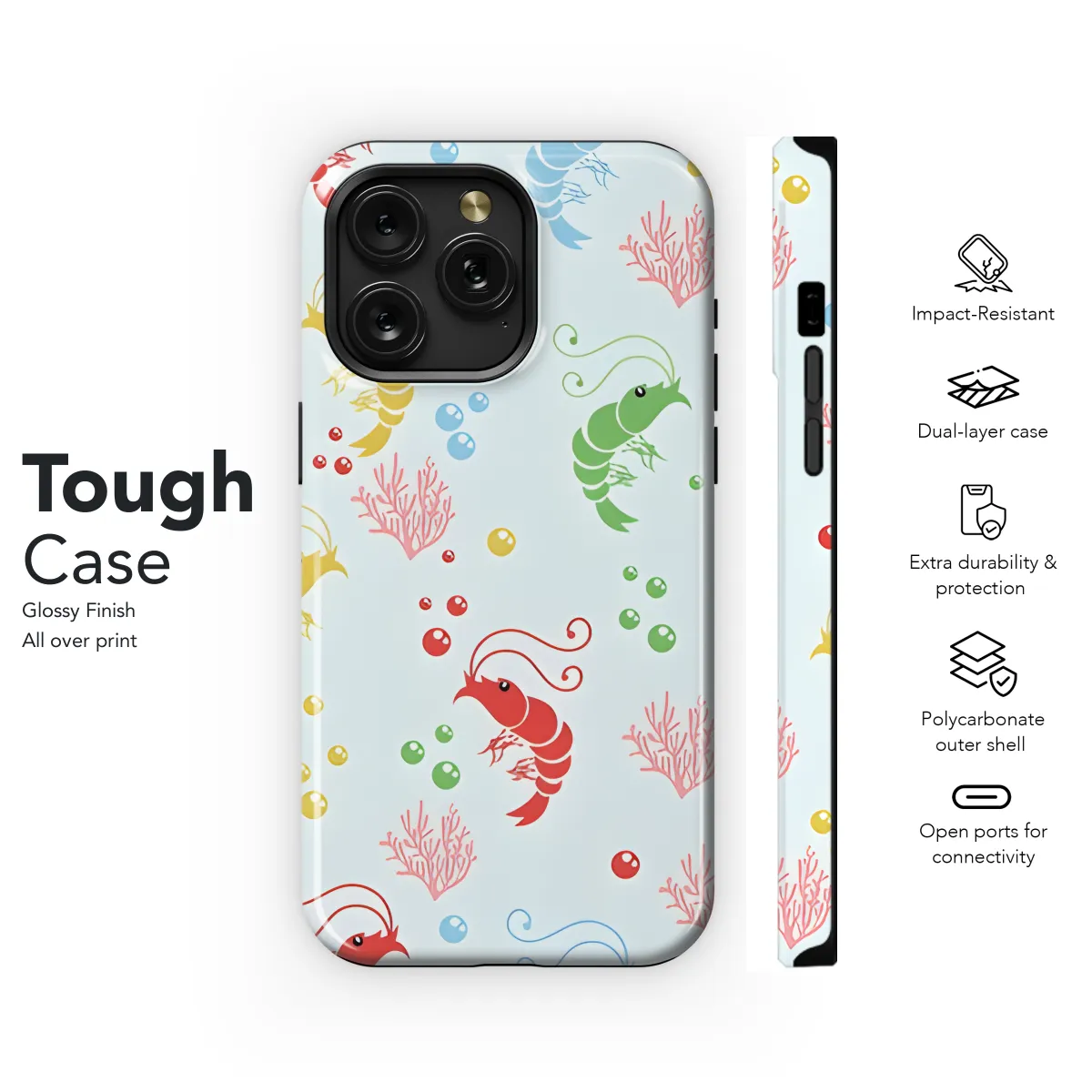Show off your love for the ocean with our exclusive Shrimp Phone Case! Designed for a perfect fit on iPhones, Samsungs, and Pixel phones, this case features a vibrant and playful shrimp design. Made with durable materials, it protects your phone from scratches and impacts while adding a touch of whimsy and individuality to your device. Get ready to make a splash with our adorable Shrimp Phone Case!