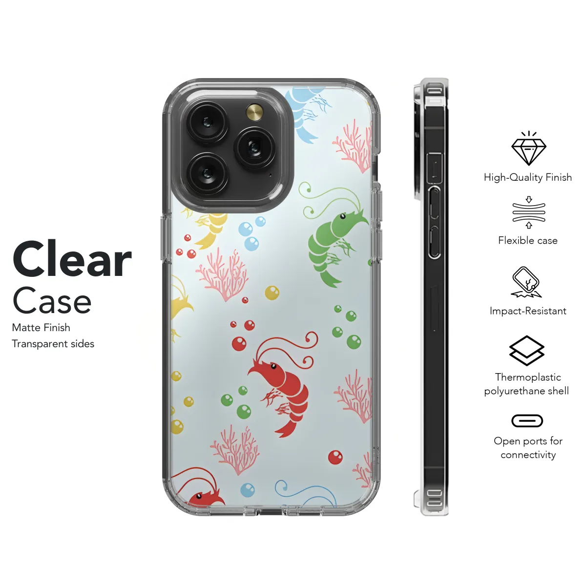 Show off your love for the ocean with our exclusive Shrimp Phone Case! Designed for a perfect fit on iPhones, Samsungs, and Pixel phones, this case features a vibrant and playful shrimp design. Made with durable materials, it protects your phone from scratches and impacts while adding a touch of whimsy and individuality to your device. Get ready to make a splash with our adorable Shrimp Phone Case!