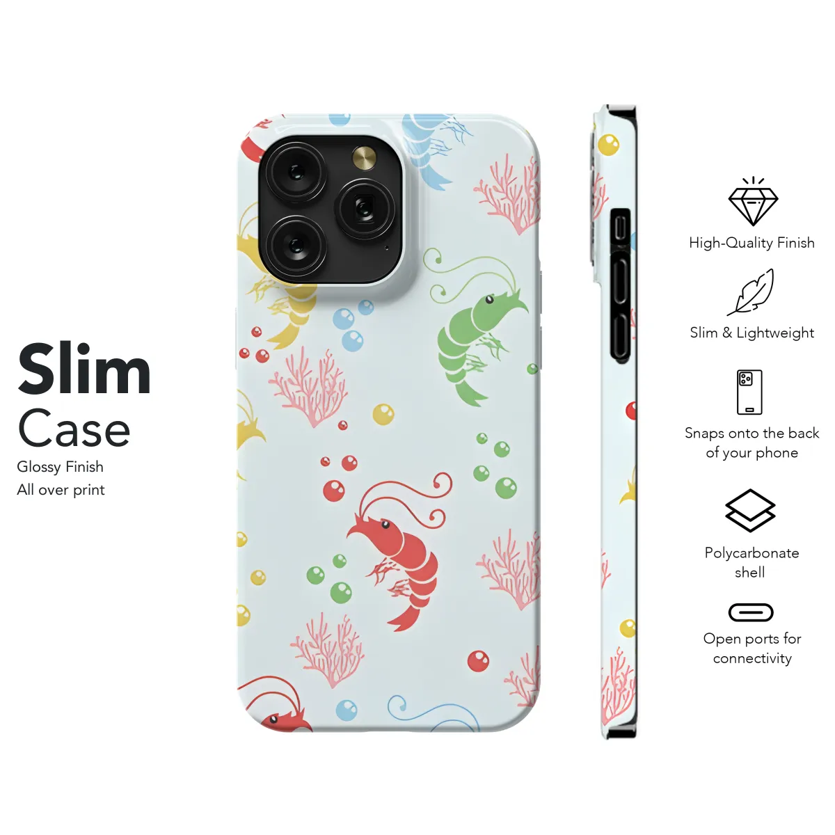 Show off your love for the ocean with our exclusive Shrimp Phone Case! Designed for a perfect fit on iPhones, Samsungs, and Pixel phones, this case features a vibrant and playful shrimp design. Made with durable materials, it protects your phone from scratches and impacts while adding a touch of whimsy and individuality to your device. Get ready to make a splash with our adorable Shrimp Phone Case!