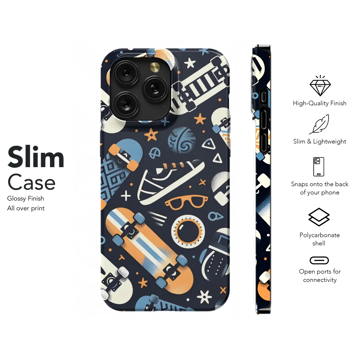Shield your phone with urban style and total protection with our Skateboard Phone Case. This sleek case features a bold skateboard print that adds instant street cred to your device. Made from durable materials, it safeguards your phone from drops, bumps, and scratches. Compatible with iPhone, Samsung, and Pixel models, it's the perfect companion for your on-the-go tech essentials.