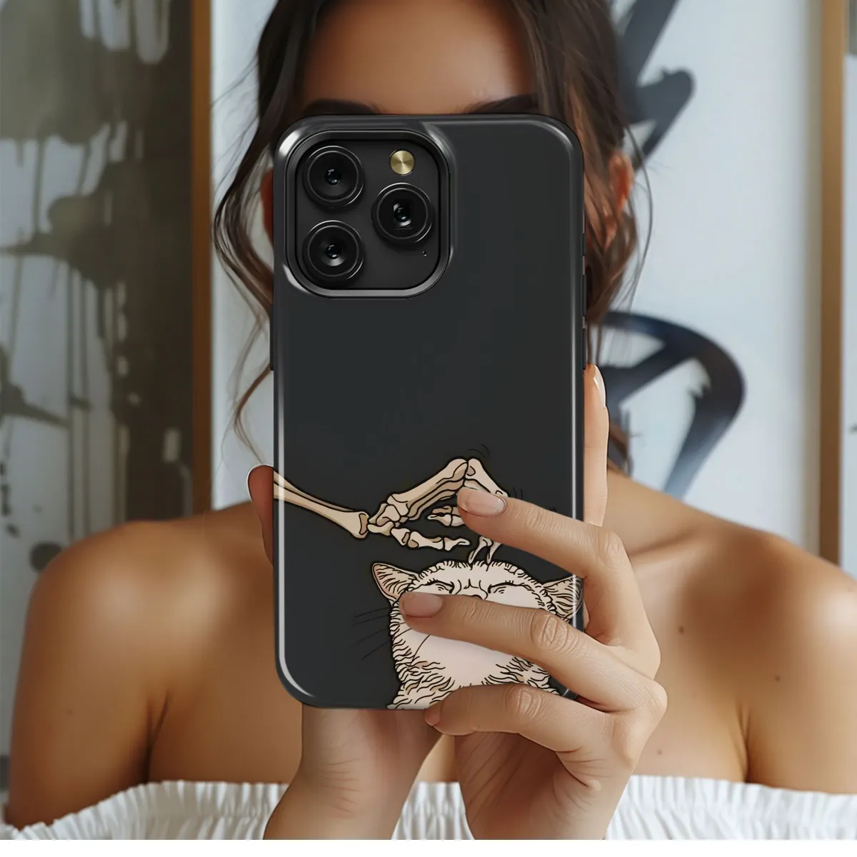 **Spooky cute meets everyday protection! This Skeleton Cat phone case adds a touch of whimsical gothic flair to your iPhone, Samsung, or Pixel. Durable and stylish, it keeps your phone safe from scratches and bumps.**