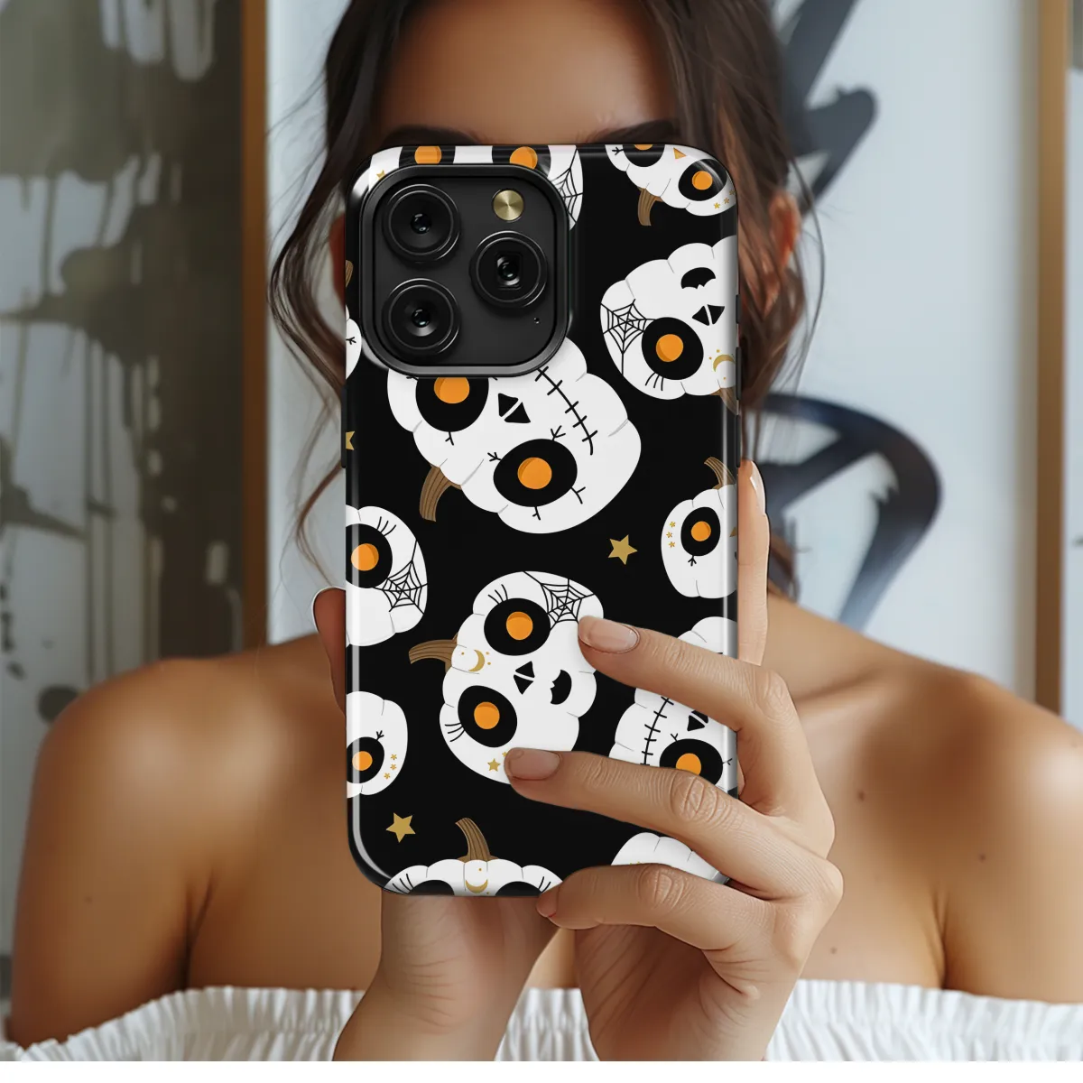 Express your spooky side with this haunting Skeleton Face Pumpkin Pattern Phone Case. Perfect for Halloween or any day you're feeling a little macabre, this case features a festive pumpkin adorned with a grinning skeleton face. Made from durable materials, it will protect your phone from bumps and scratches while adding a touch of spooky style.