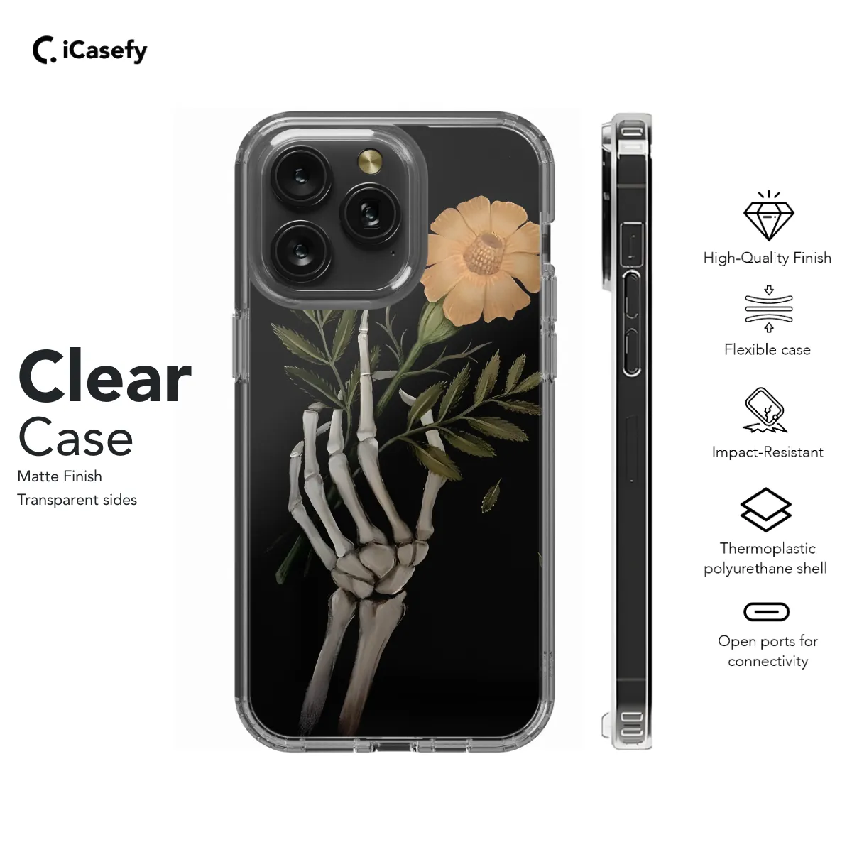 Spookify your phone with our eerie Skeleton Hand Phone Case! Its detailed design, featuring an outstretched skeletal hand, adds a touch of macabre chic to any device. Compatible with a wide range of iPhone, Samsung, and Pixel models, this case offers protection and a dash of the supernatural. Its lightweight construction and precise cutouts ensure a snug fit and easy access to all ports and buttons. Embrace the spooky season or add a touch of the undead to your everyday style with the Skeleton Hand Phone Case. Its durable materials and unique design are sure to turn heads and raise a few extra bones!