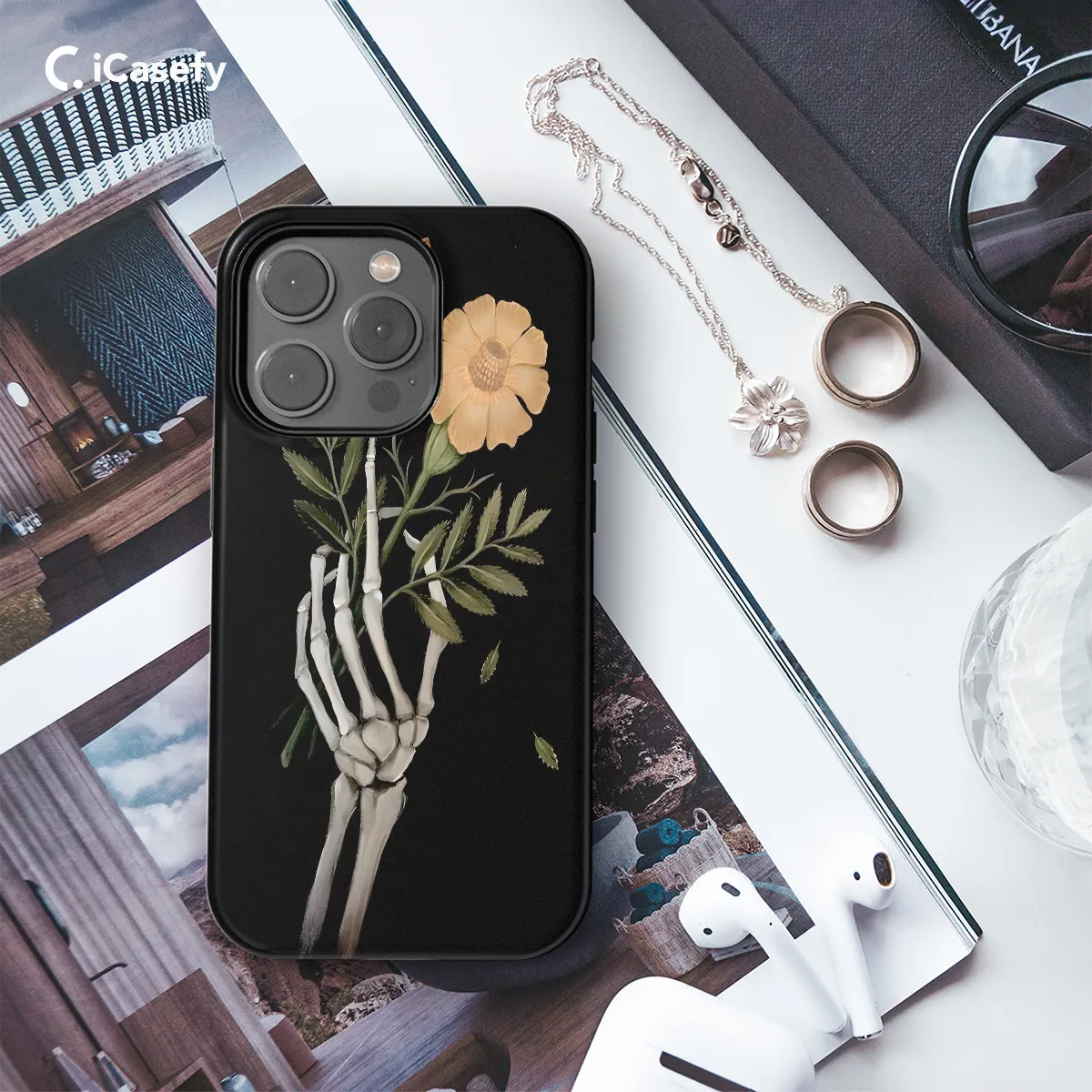 Spookify your phone with our eerie Skeleton Hand Phone Case! Its detailed design, featuring an outstretched skeletal hand, adds a touch of macabre chic to any device. Compatible with a wide range of iPhone, Samsung, and Pixel models, this case offers protection and a dash of the supernatural. Its lightweight construction and precise cutouts ensure a snug fit and easy access to all ports and buttons. Embrace the spooky season or add a touch of the undead to your everyday style with the Skeleton Hand Phone Case. Its durable materials and unique design are sure to turn heads and raise a few extra bones!