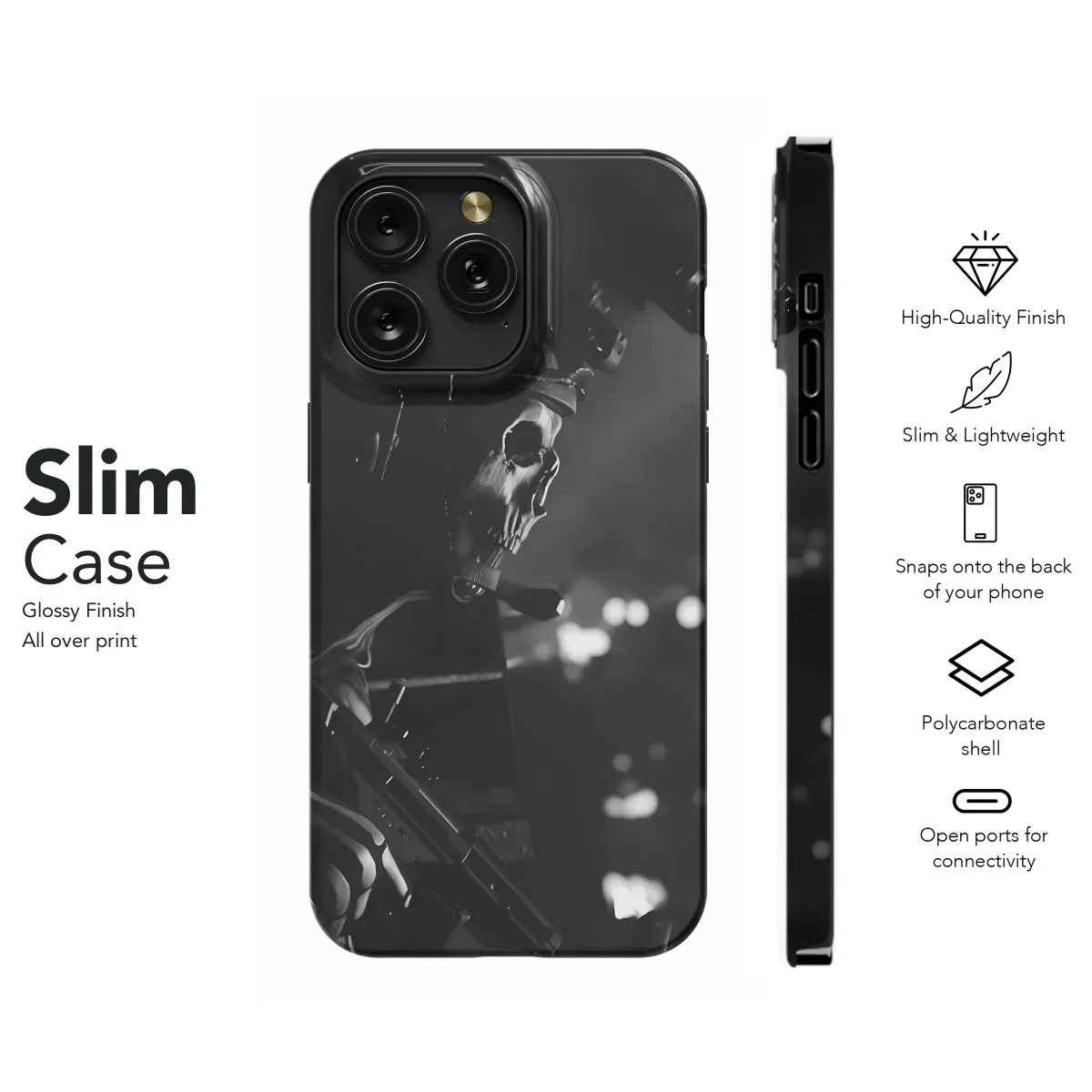 Unleash your inner warrior with this striking design, featuring a skull-masked soldier in a monochrome masterpiece. This edgy graphic captures the intensity of covert ops and the mysterious allure of the unknown. Perfect for adding a touch of rebellious grit to your personal style, this print exudes a powerful and enigmatic vibe. The high-resolution image ensures vibrant, long-lasting color and detail, showcasing the intricate skull mask and the soldier's weapon with breathtaking clarity. This bold and captivating design is a conversation starter, guaranteeing you'll stand out from the crowd. It's more than just a protective covering; it's a statement of individuality and a reflection of your unique personality. Express your inner strength and embrace your dark side with this unforgettable accessory. Available in various sizes to fit your device perfectly. Show the world your fierce style and grab yours today. This design is printed using high-quality, durable inks to withstand daily wear and tear, ensuring it looks fantastic for as long as you own it. It’s the perfect blend of edgy aesthetics and practicality, combining both fashion and function. Transform your everyday essential into a powerful symbol of self-expression. Choose this design and command attention wherever you go.