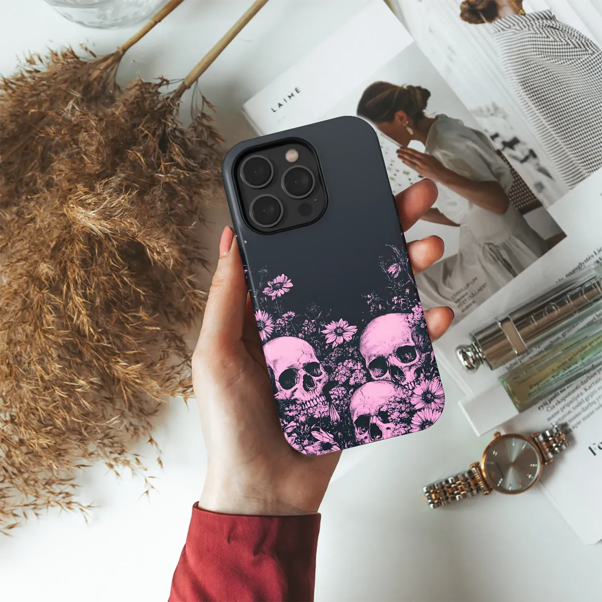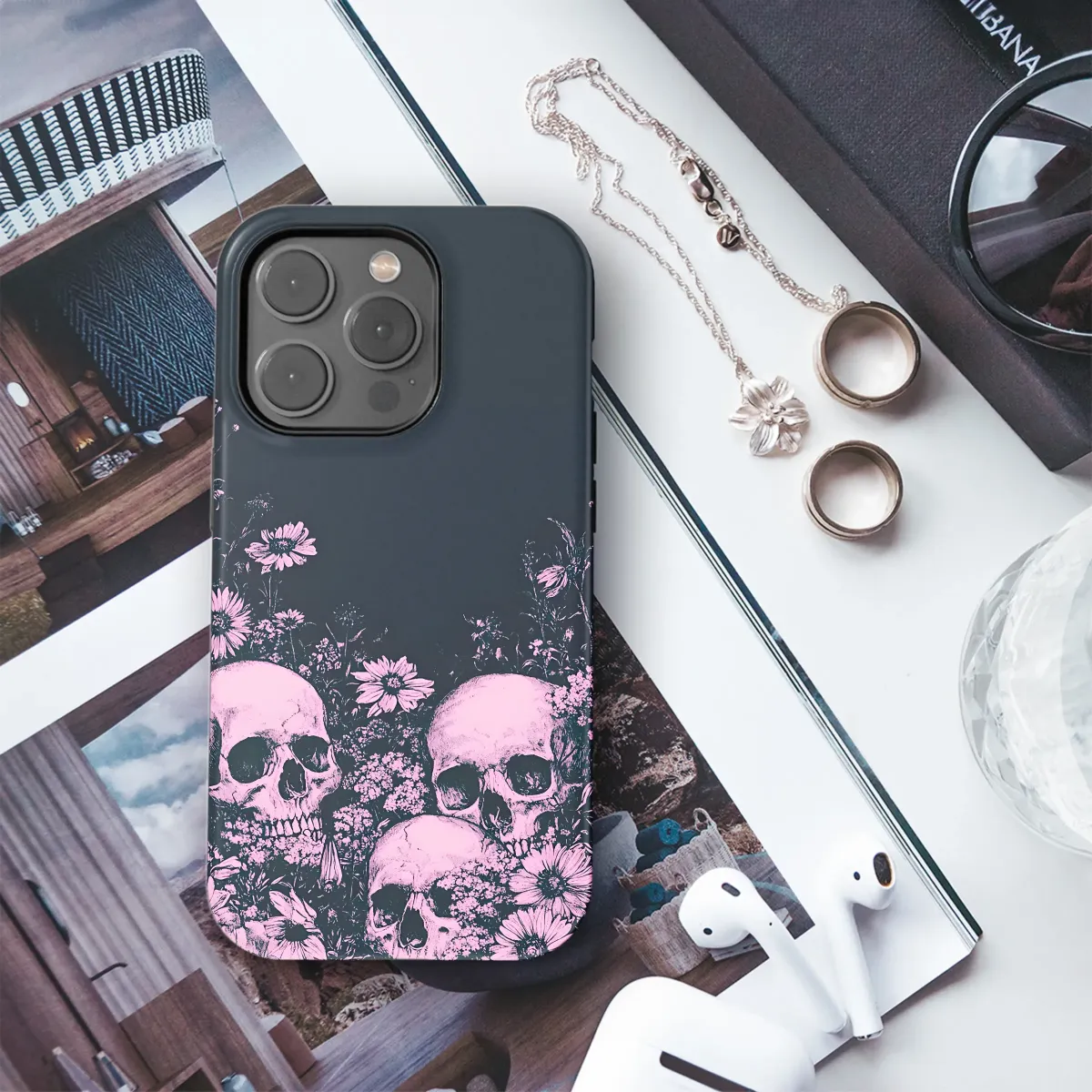 Adorn your device with this captivating design featuring three delicately rendered skulls nestled amongst a vibrant array of wildflowers. The soft pink hues of the skulls contrast beautifully against the deep black background, creating a striking yet subtly romantic aesthetic. This gothic floral motif offers a unique blend of dark elegance and whimsical charm, perfect for those who appreciate artistry with a touch of the macabre. The intricate detailing ensures the image remains crisp and clear on your chosen surface, making it a standout accessory that reflects your individual style. This enchanting design is a conversation starter, sure to garner compliments wherever you go. Embrace your unique personality with this captivating and high-quality print, ideal for expressing your individuality and adding a dash of unconventional flair to your daily life. This stylish and memorable piece makes a perfect gift for yourself or a fellow admirer of gothic artistry, floral designs, and captivating visual contrasts. Search terms: gothic, floral, skulls, flowers, pink, black, dark, romantic, macabre, elegant, whimsical, unique, artistic, high-quality, gift, accessory.