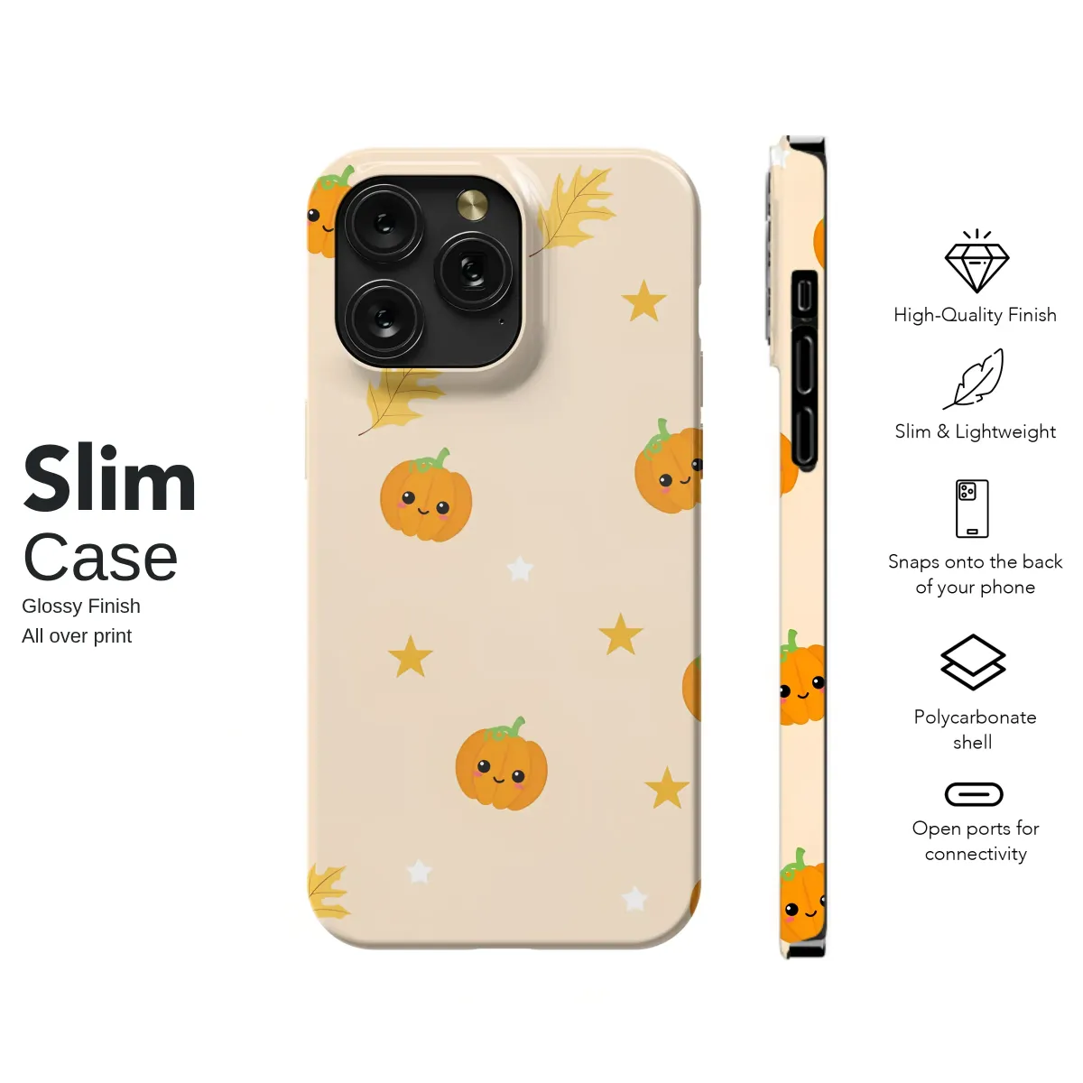 Embrace the coziest season of the year with this absolutely charming design, a delightful celebration of all things fall. Tiny, cheerful pumpkins with the sweetest smiles float across a warm, creamy background, bringing instant joy and a touch of kawaii magic to your day. They are joined by a whimsical dance of falling golden oak leaves and a sprinkle of soft white and sunny yellow stars, a pattern that captures the pure wonder of a perfect autumn night. It’s a design that feels like a warm hug, a crisp walk through a pumpkin patch, and a sip of spiced cider all in one. Perfect for anyone who loves the charming, cute side of Halloween and the entire fall season. This delightful artwork is a beautiful way to celebrate the harvest season, from the first chilly evenings of September through Thanksgiving festivities. Let this sweet pattern adorn your most-used accessory, adding a touch of seasonal whimsy and protecting your tech with a layer of pure happiness. It's the perfect autumn gift for a friend or a delightful treat for yourself, ensuring you carry the spirit of fall with you wherever you go.