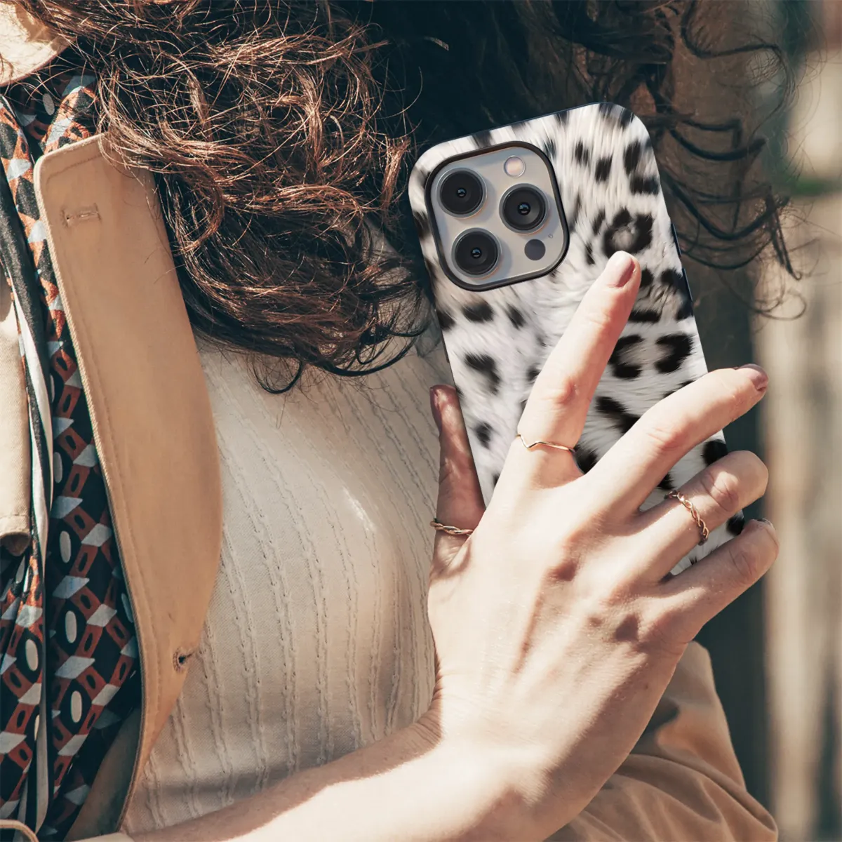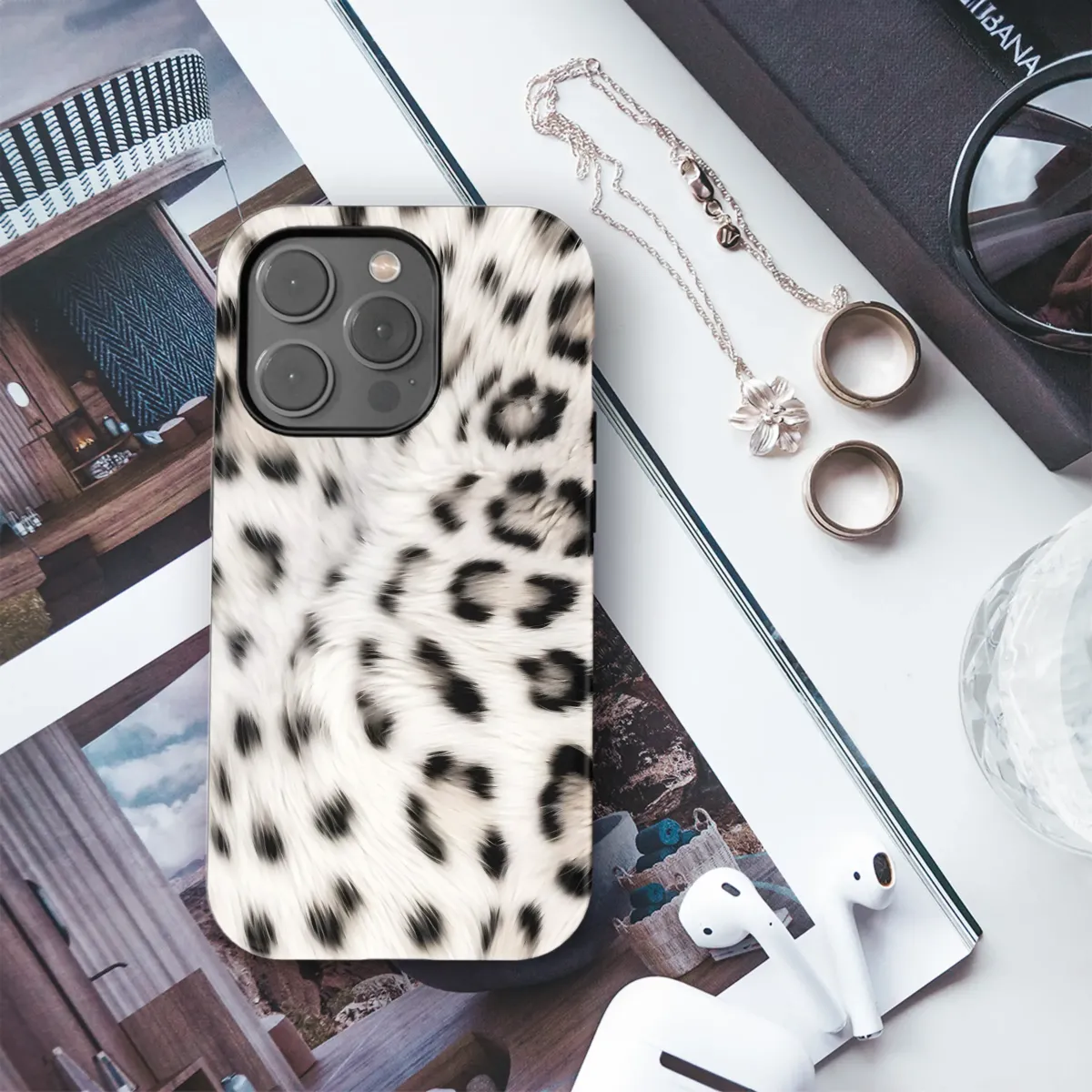 Unleash your wild side with this striking animal print design! Featuring a bold, yet sophisticated, snow leopard inspired pattern, this artwork exudes a sense of modern elegance. The contrasting black spots against the soft, creamy background create a visually captivating texture, making it a stylish statement piece. Perfect for those who love chic, trendy designs, this print seamlessly blends classic animal motifs with contemporary aesthetics. Elevate your everyday carry with this fierce and fashionable pattern. Ideal for adding a touch of safari-inspired flair to your look, this design is sure to turn heads and spark conversation. Get your hands on this unique artwork and showcase your individual style with confidence! Keywords: animal print, snow leopard, spotted design, fashion accessory, stylish pattern, trendy, chic, modern, safari style, cream, black, artistic, unique, statement piece.