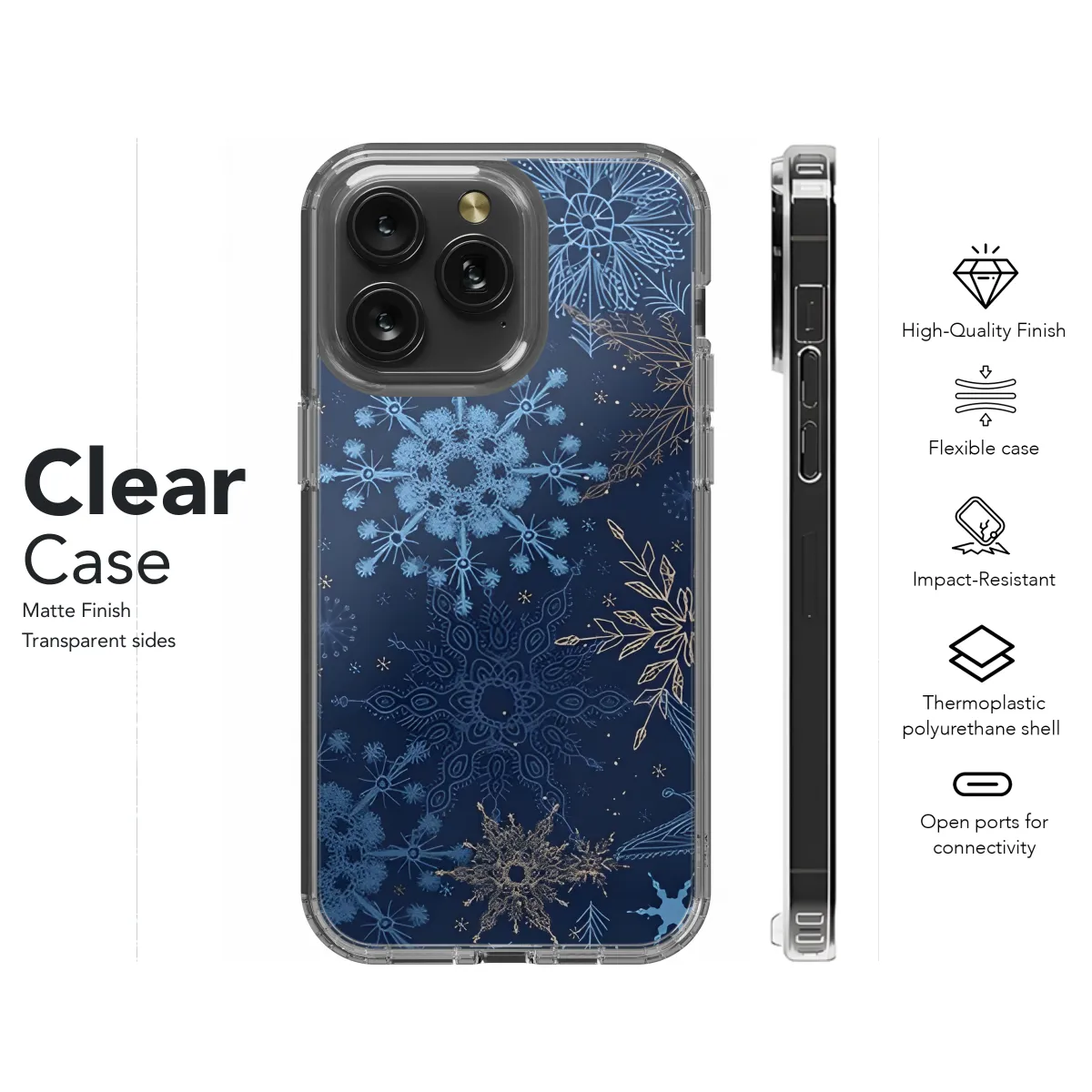 Protect your phone in style this holiday season with our Snowflake Christmas New Year Pattern Phone Case. This case is made of durable materials to keep your phone safe from bumps and scratches, and the festive design is sure to get you into the holiday spirit. The case is available for a variety of iPhone, Samsung, and Pixel models, so you can find the perfect one for your phone.