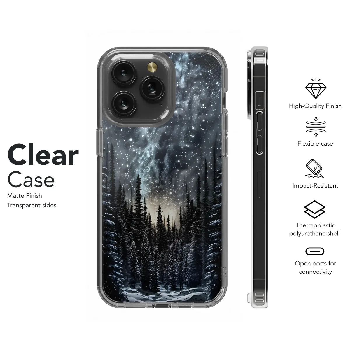 Embrace the magic of a winter wonderland with this breathtaking design. A captivating scene of snow-laden evergreens silhouetted against a vibrant, star-dusted night sky. The Milky Way stretches across the canvas, creating a dreamy, ethereal atmosphere perfect for those who appreciate nature's beauty and the wonder of the cosmos. This stunning artwork transforms your personal device into a portal to a peaceful, serene escape, bringing a touch of celestial charm to your everyday life. The high-quality print ensures vibrant colors and exceptional detail, making this a unique and unforgettable accessory. This design is a striking statement piece, guaranteed to evoke feelings of tranquility and awe. It's the ideal gift for stargazers, nature lovers, or anyone who appreciates art that inspires wonder. Add a touch of cosmic elegance to your style with this exquisite piece that seamlessly blends winter's magic with the celestial wonders above. Show your appreciation for the beauty of nature and the captivating allure of the night sky with this remarkable design.