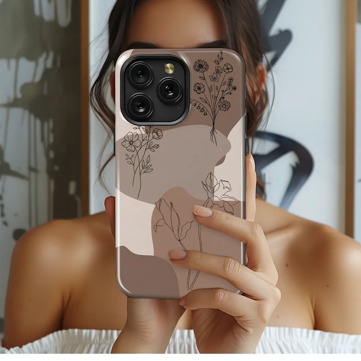 Wrap your most essential daily companion in a touch of serene, botanical artistry with this stunning minimalist design. Delicate wildflower line art, capturing the untamed elegance of a secret garden, dances across a warm, earthy palette of abstract organic shapes. Imagine the feel of this modern boho aesthetic in your hand, a subtle statement piece that blends sophisticated, clean lines with the gentle calm of nature. The rich mocha, soft taupe, and creamy beige tones create a versatile and chic neutral background, making it the perfect accessory for any outfit or mood. This isn't just a floral print; it's a piece of wearable art designed for the creative soul, the coffee shop dreamer, and the lover of understated beauty. It makes for a thoughtful and unique gift for her, a best friend gift that speaks to a shared love for cottagecore charm, or a special treat to elevate your own everyday carry. Let this beautiful botanical design dress your tech in a durable skin of Japandi-inspired simplicity, bringing a moment of peace and artistic flair to your digital world.